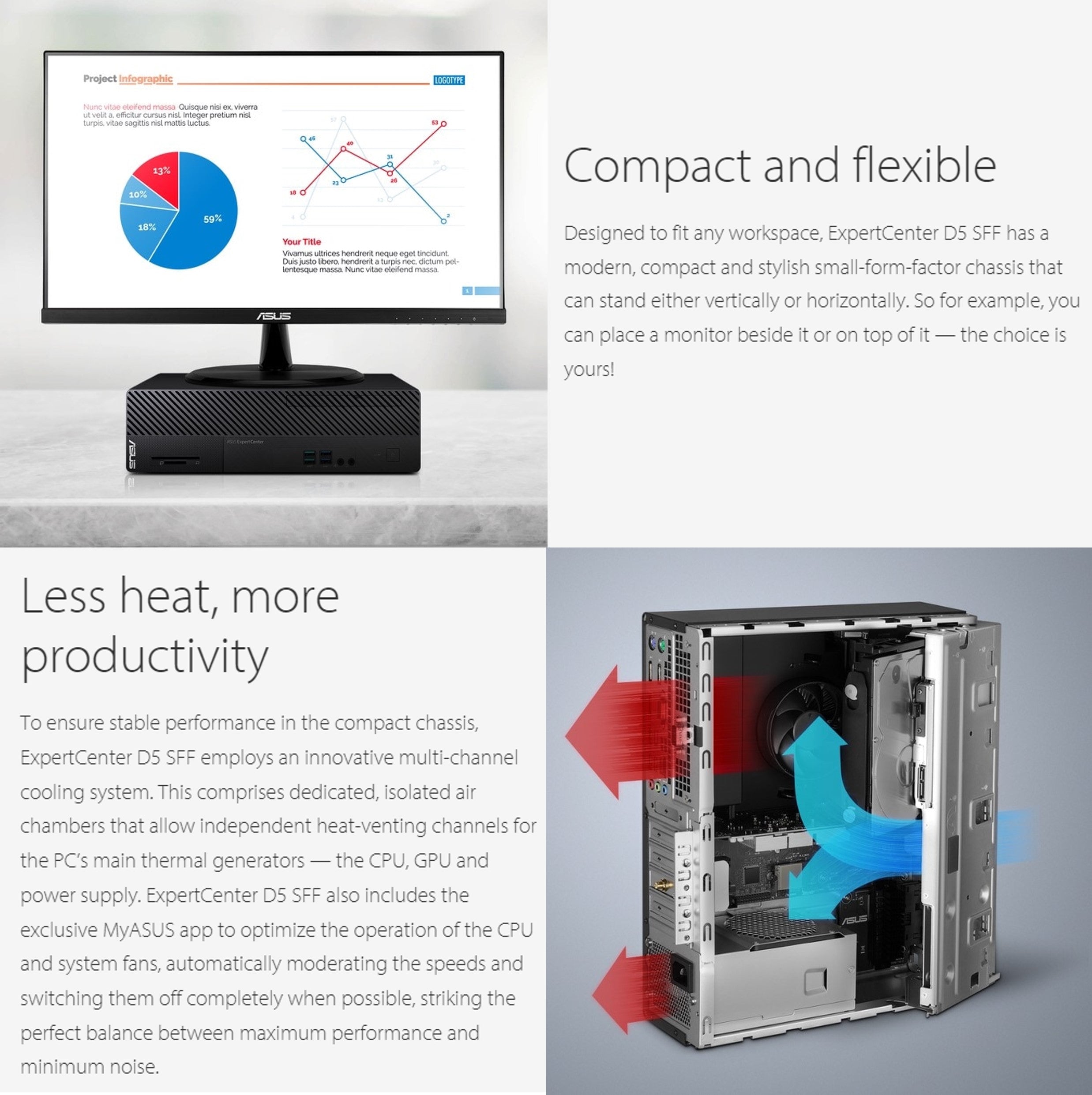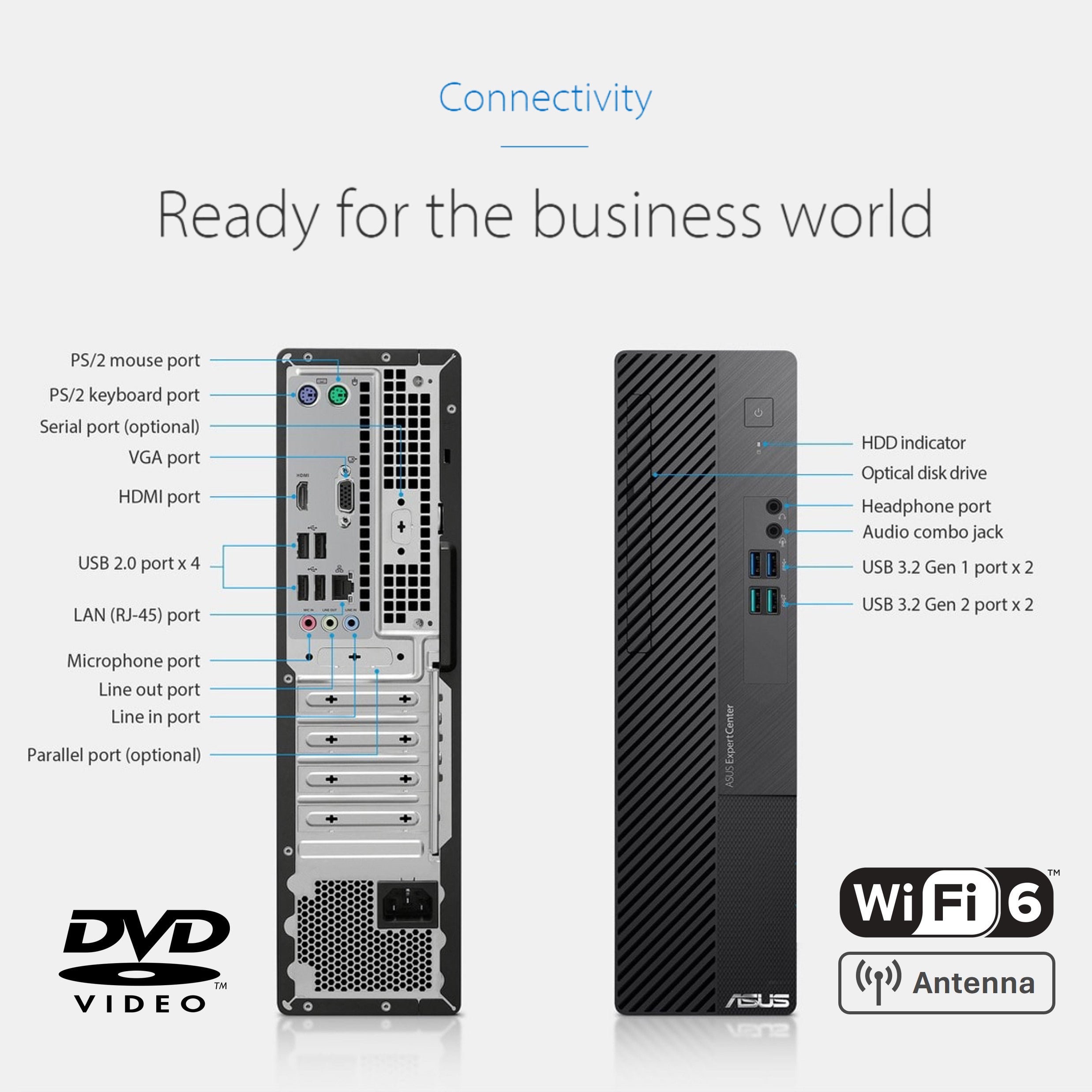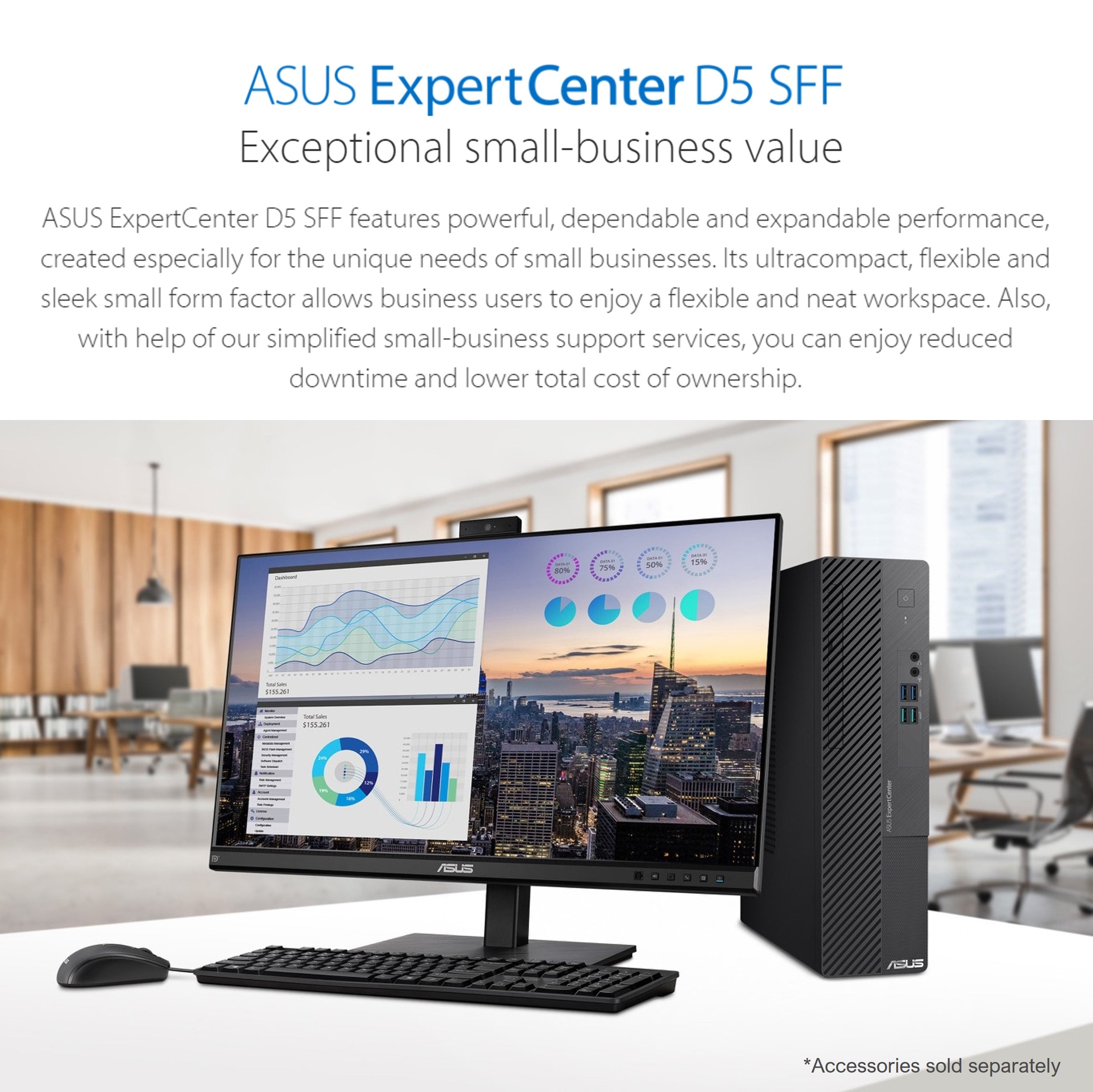 ASUS ExpertCenter D5 Business SFF Desktop, Intel Core i5-12400, Intel UHD Graphics, 8GB DDR4 UDIMM RAM, 512GB PCIe M.2 SSD, Wi-Fi 6, No OS, Black