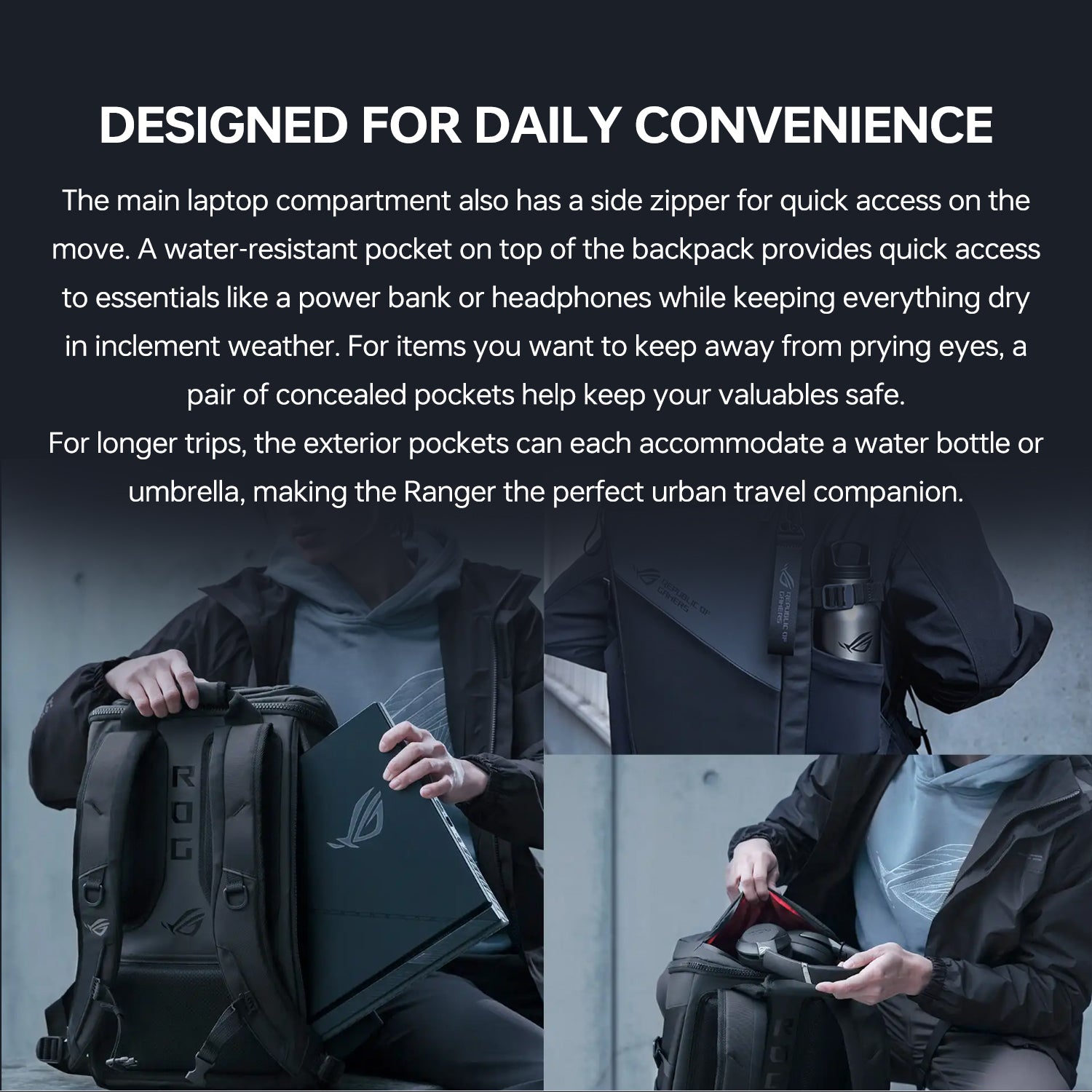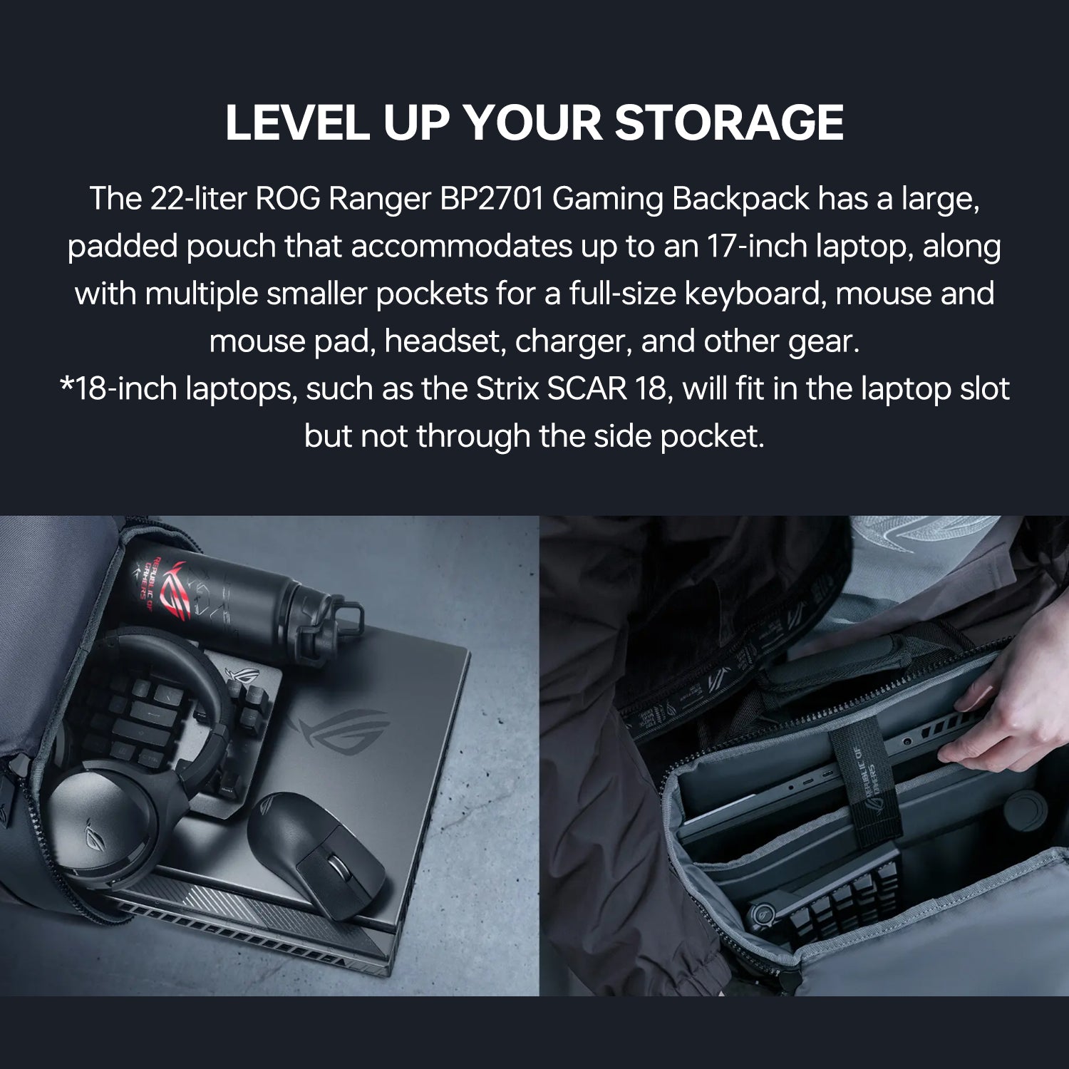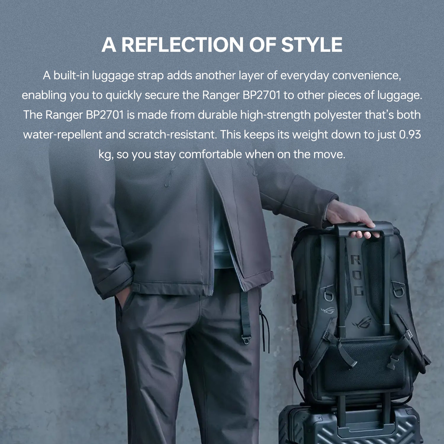 ASUS ROG RANGER BP2701 Gaming backpack, up to 17.3 laptop storage, Built-in luggage strap, Designed for Daily Convenience