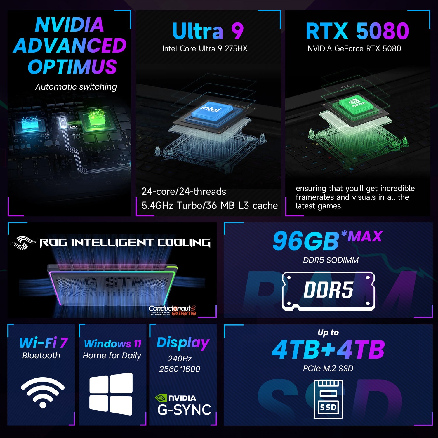 ASUS ROG Strix 16" Traditional Laptop Intel Core Ultra 9 32GB RAM NVIDIA GeForce RTX 5080 1TB SSD Storage Windows 11 Home 240Hz - Grey