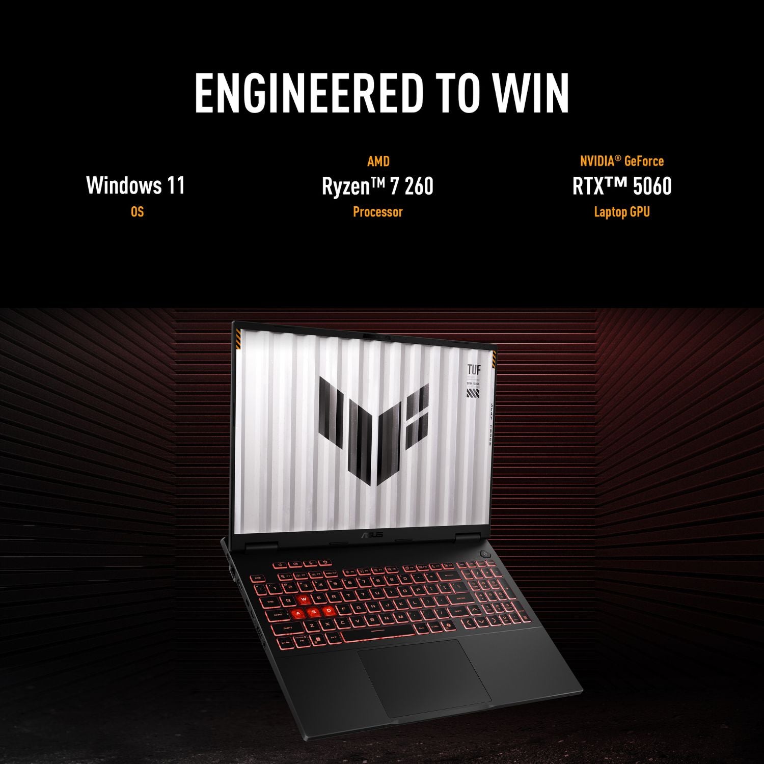 ASUS TUF A16 16 inches Traditional Laptop AMD Ryzen 7 32GB RAM NVIDIA GeForce RTX 5060 2TB SSD Storage Windows 11 Pro 165Hz - Grey