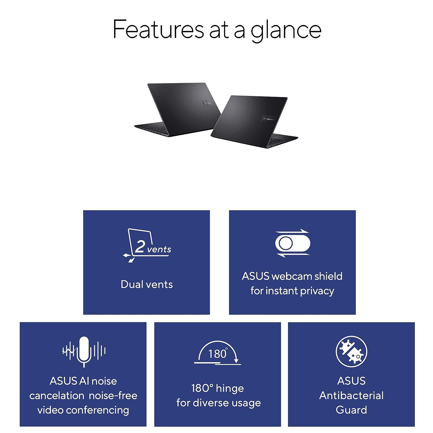 ASUS Vivobook Laptop, 16" FHD+ Non-touch 60Hz, Intel Core i5-1235U, Intel Iris Xe Graphics, 8GB DDR4 RAM, 512GB PCIe M.2 SSD, Wi-Fi 5, Windows 11 Home, Black