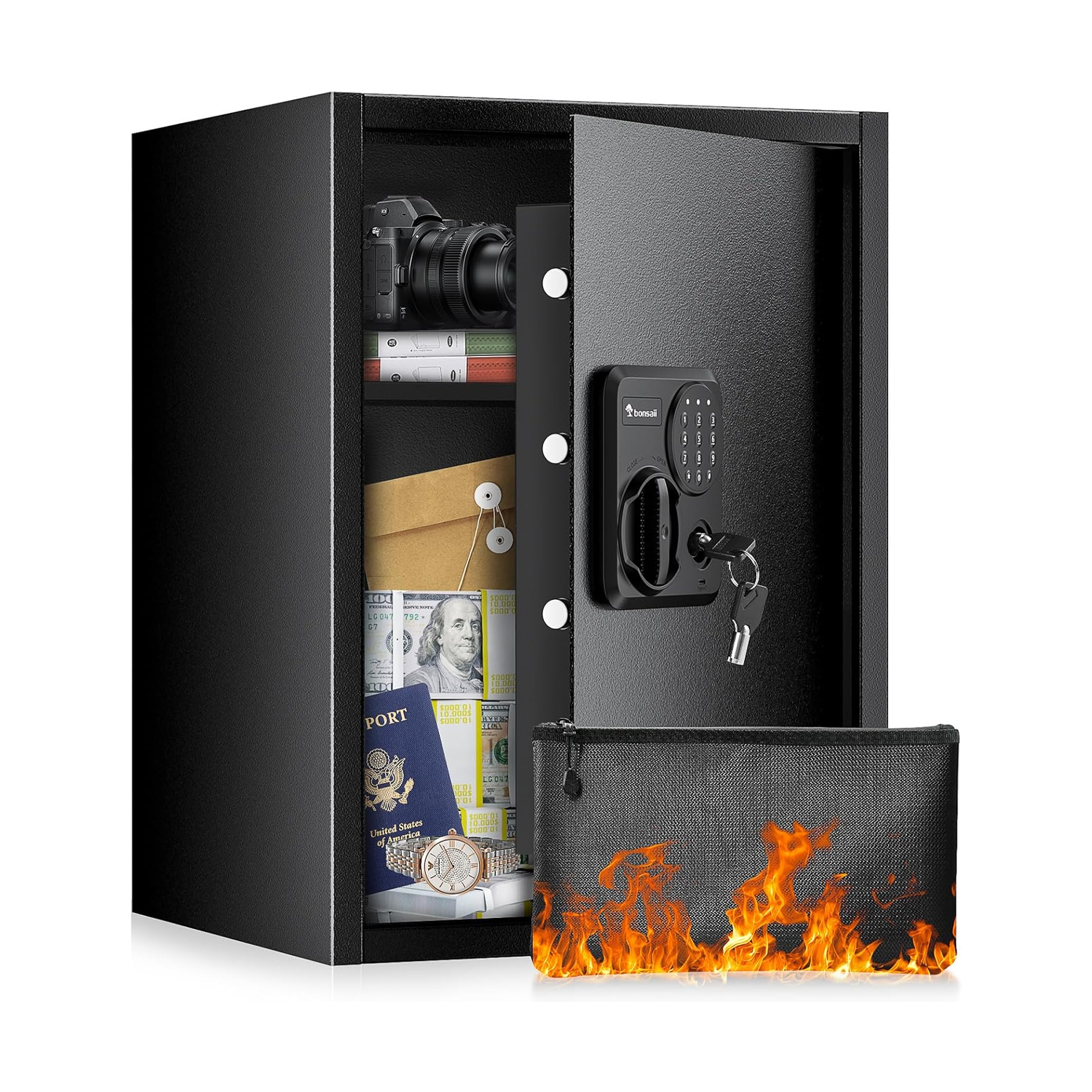 Bonsaii 1.8 Cubic Feet Security Home Safe with Digital Keypad & Fireproof Bag, Fire-Resistant Security Box for Jewelry, Cash, Guns | Fireproof Document Safe (14.2"x12.99"x19.7")