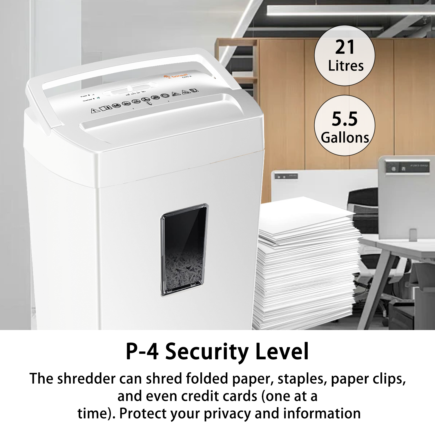 Bonsaii Heavy-Duty Cross-Cut Shredder, Handles up to 12 Sheets at Once, Providing P-4 high Security, Credit Cards, Mail & taples, 5.5-Gallon bin with a Transparent Window, Use in Home Offices, White