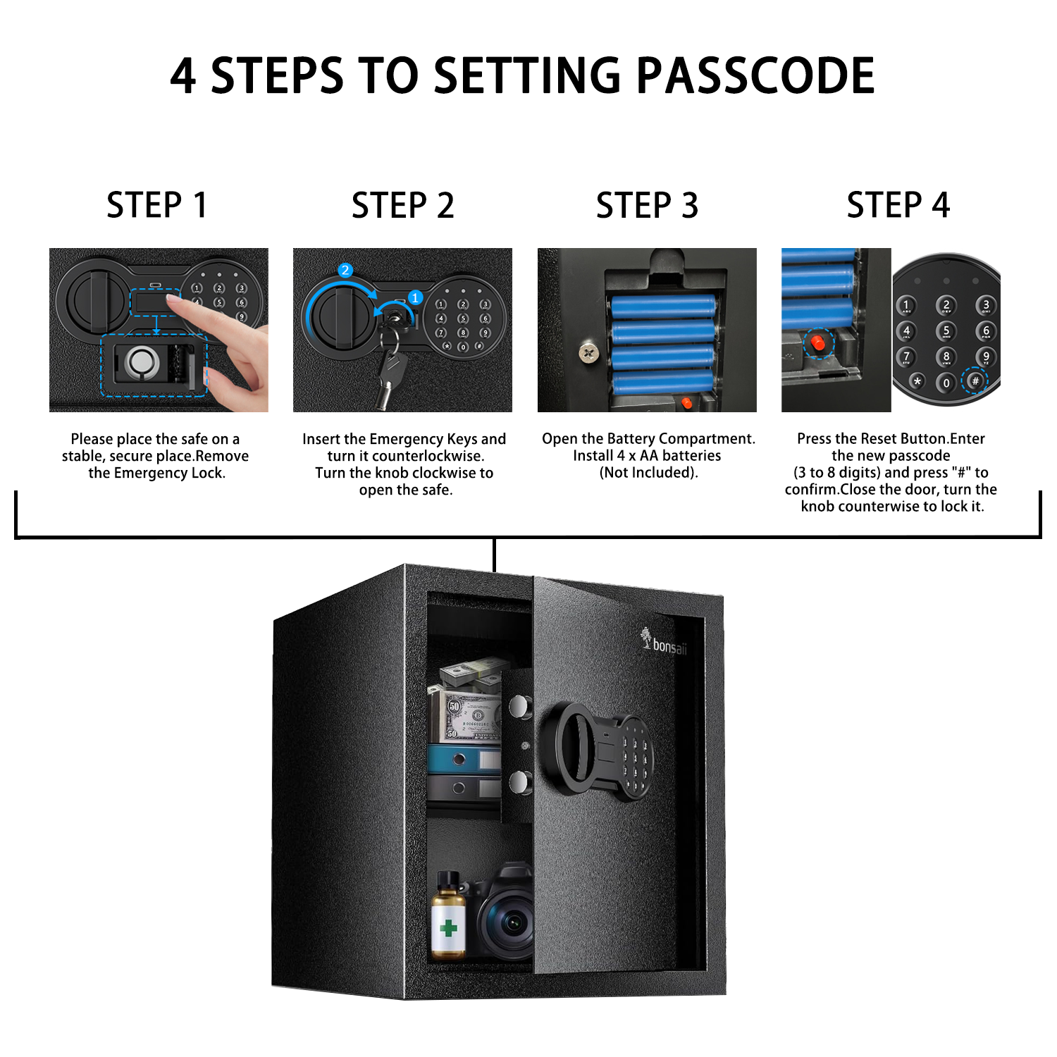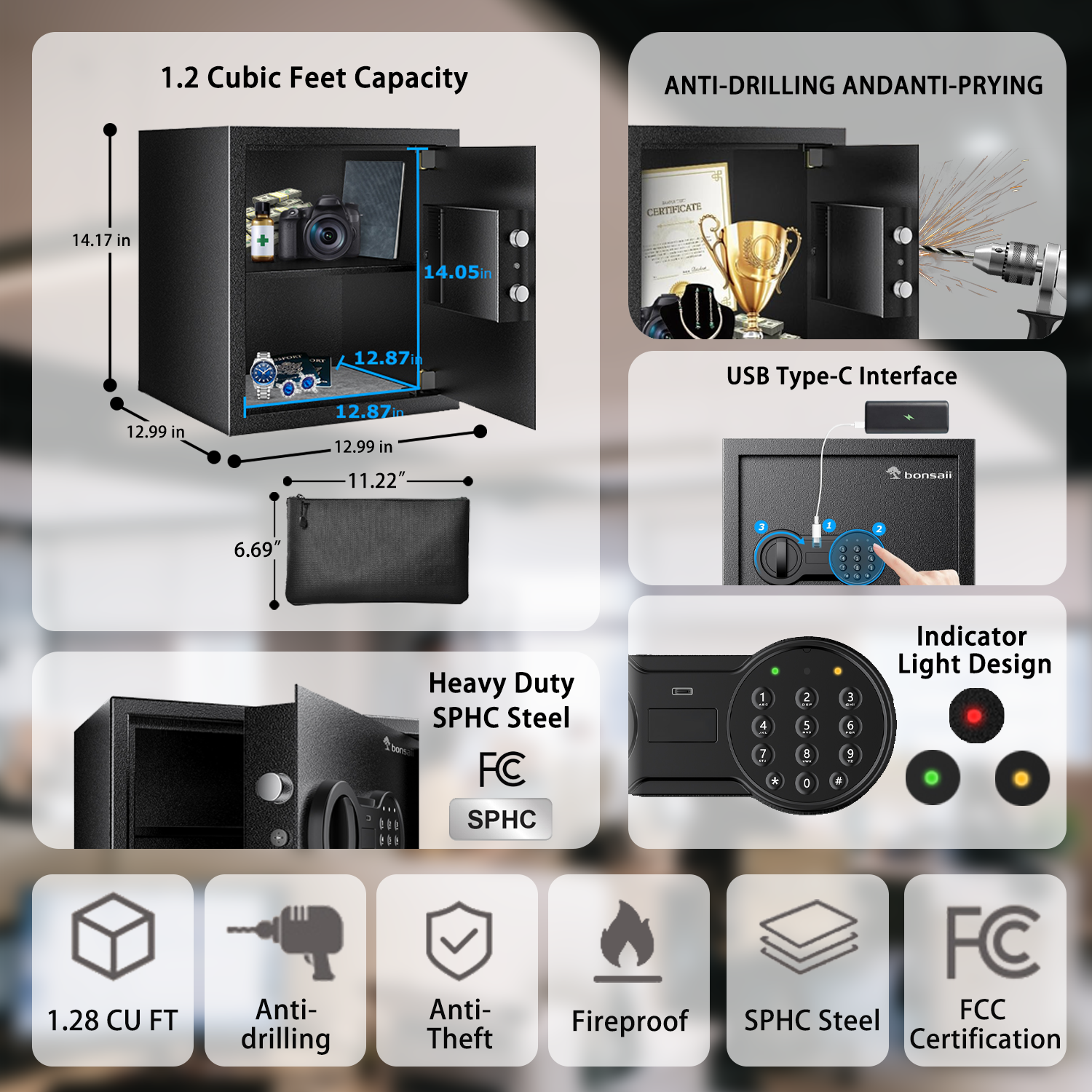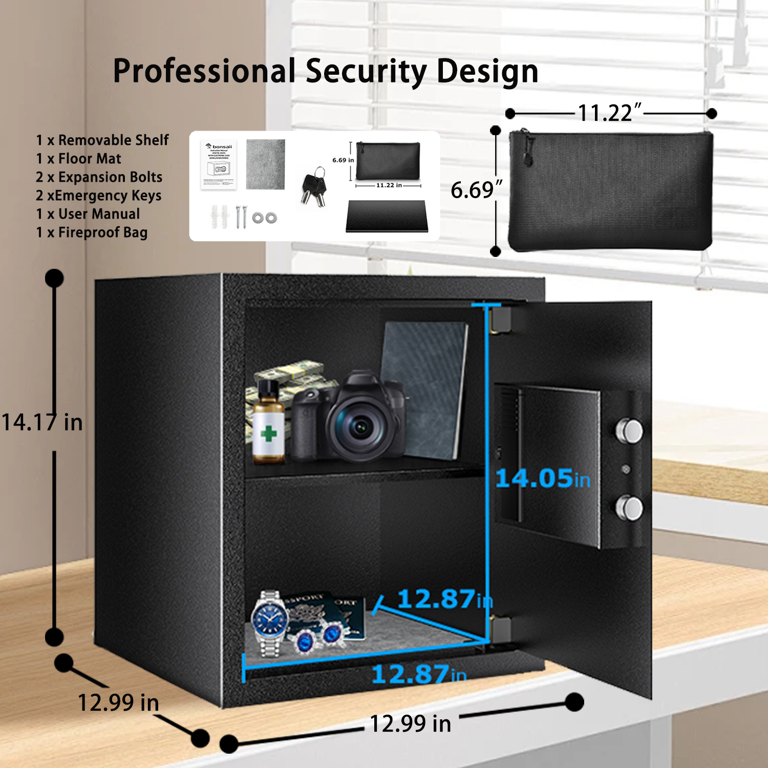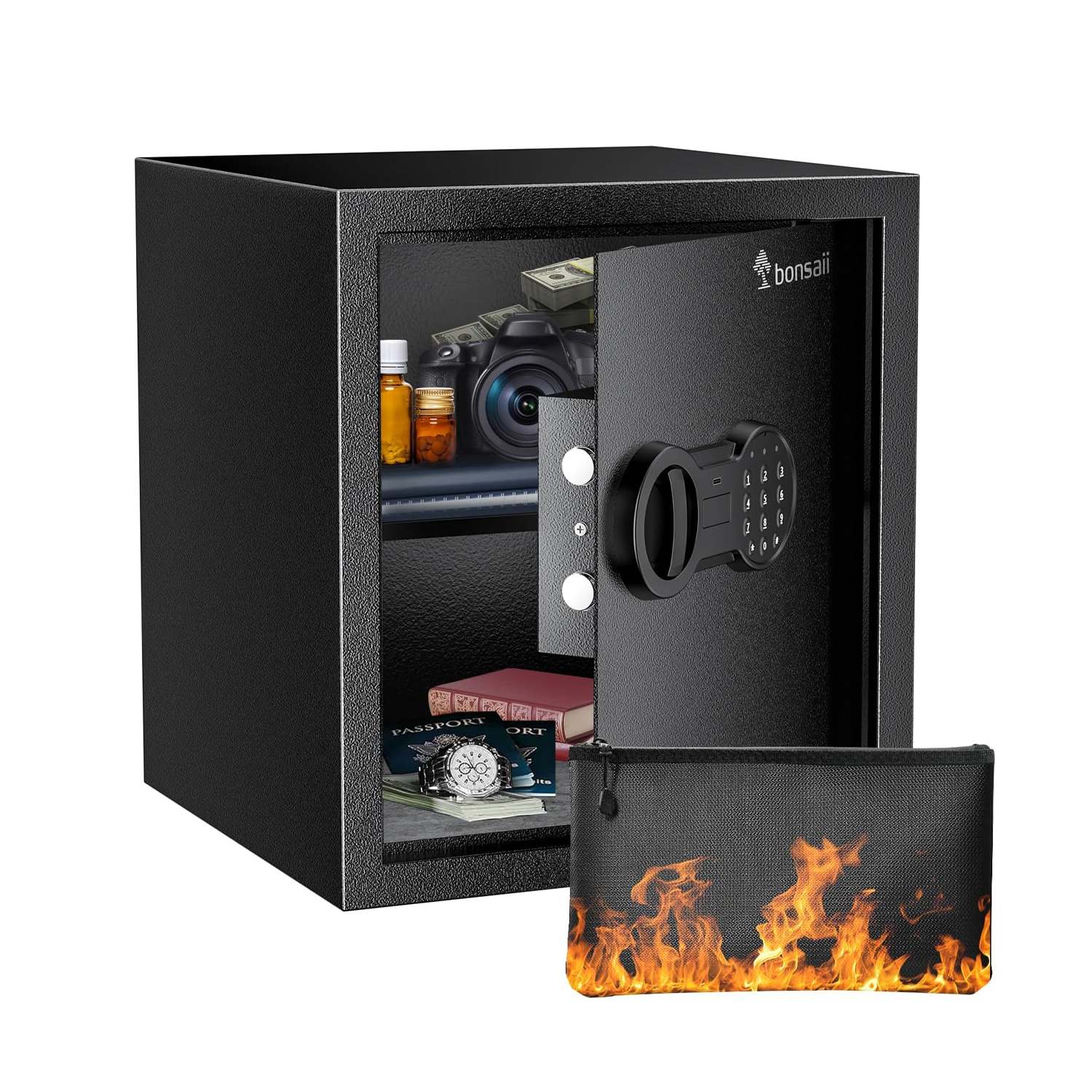 Bonsaii Security Safe Box with Money Bag, 1.28 Cubic Feet Large Document Safe Box for Home, Digital Keypad Lock, Removable Shelf for Money, Medicine, Valuables, 12.99 x 14.17 x 12.99 Inches