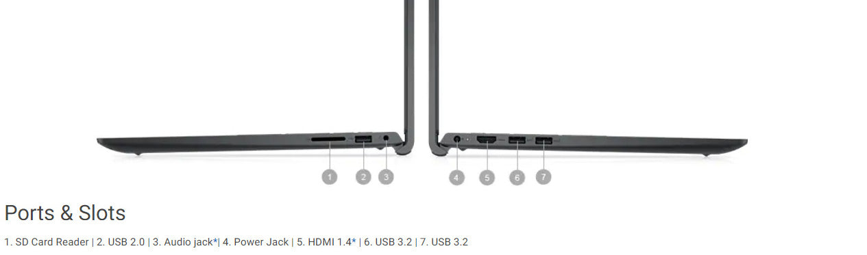 Ports: 1 x SD Card Reader, 1 x USB 2.0, 2 x USB 3.2, 1 x HDMI 1.4, 1 x Headphone & Microphone Audio Jack