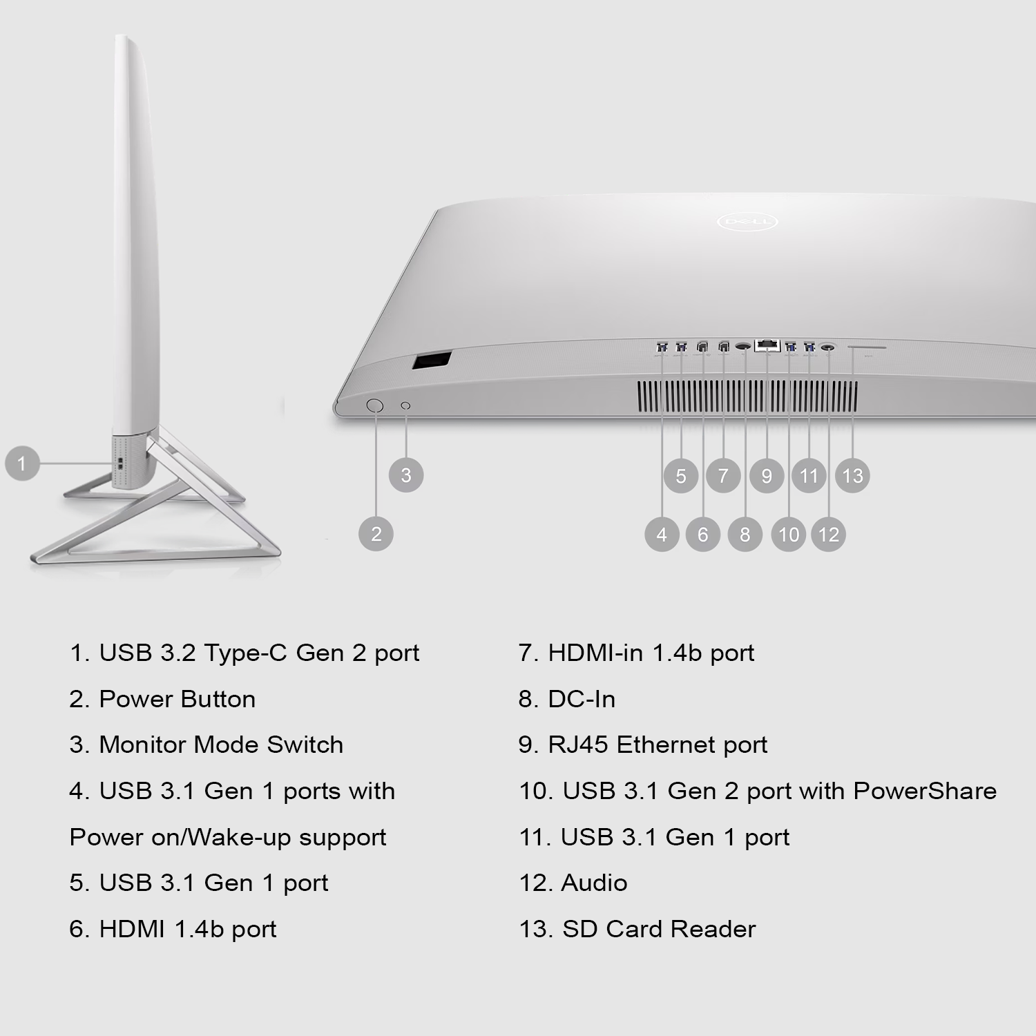 Dell Inspiron 5000 Series 5420 All-in-One, 23.8" FHD 1920 * 1080 Touchscreen 60Hz, Intel Core i7-1355U, Intel Iris Xe Graphics, 16GB DDR4 RAM, 256GB PCIe M.2 SSD + 1TB 2.5" HDD, Wi-Fi 6, Windows 11 Home, White