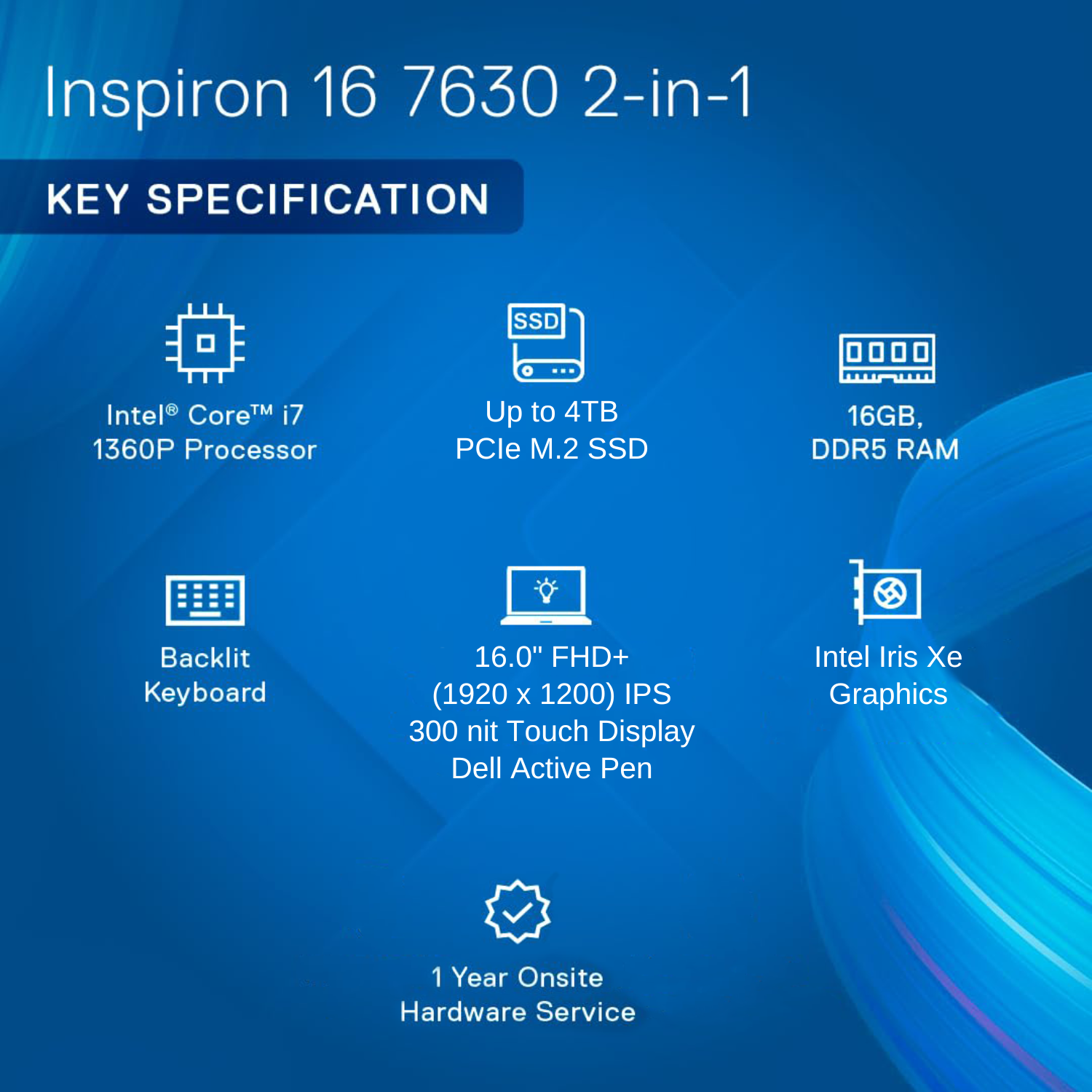 DELL Inspiron 7000 Series Daily 2-in-1 Laptop, 16" FHD+ 1920*1200 Touchscreen 60Hz, Intel Core i7-1360P, Intel Iris Xe Graphics, 16GB DDR5 SODIMM, 1TB PCIe M.2 SSD, Wi-Fi 6, Non-RGB Backlit Keyboard, Windows 11 Home, Silver
