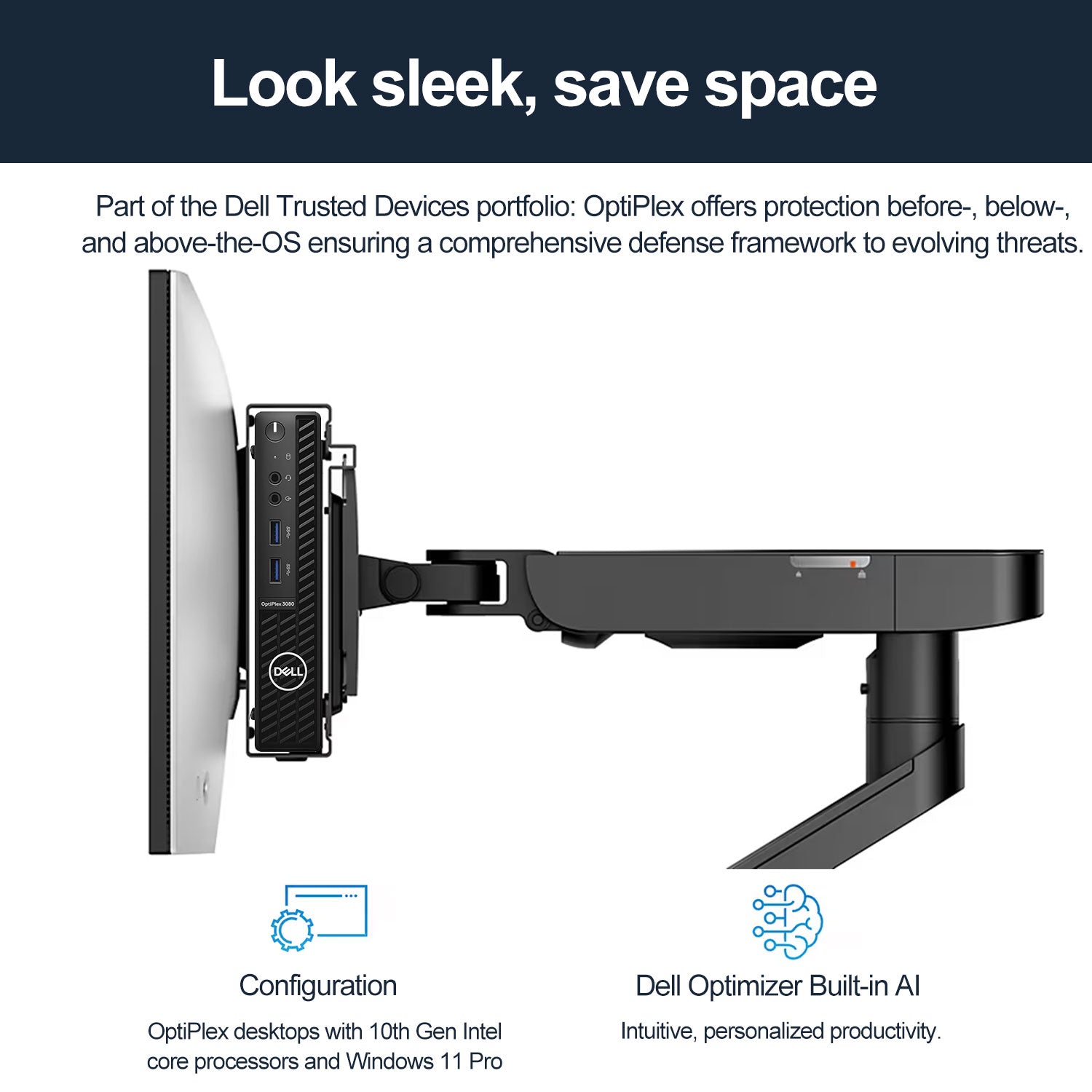 DELL OptiPlex 3000 Series 3080 Business MFF Desktop, Intel Core i5-10500T, Intel UHD Graphics, 8GB DDR4 SODIMM, 256GB PCIe M.2 SSD, Wi-Fi 5, Windows 10 Pro, Black