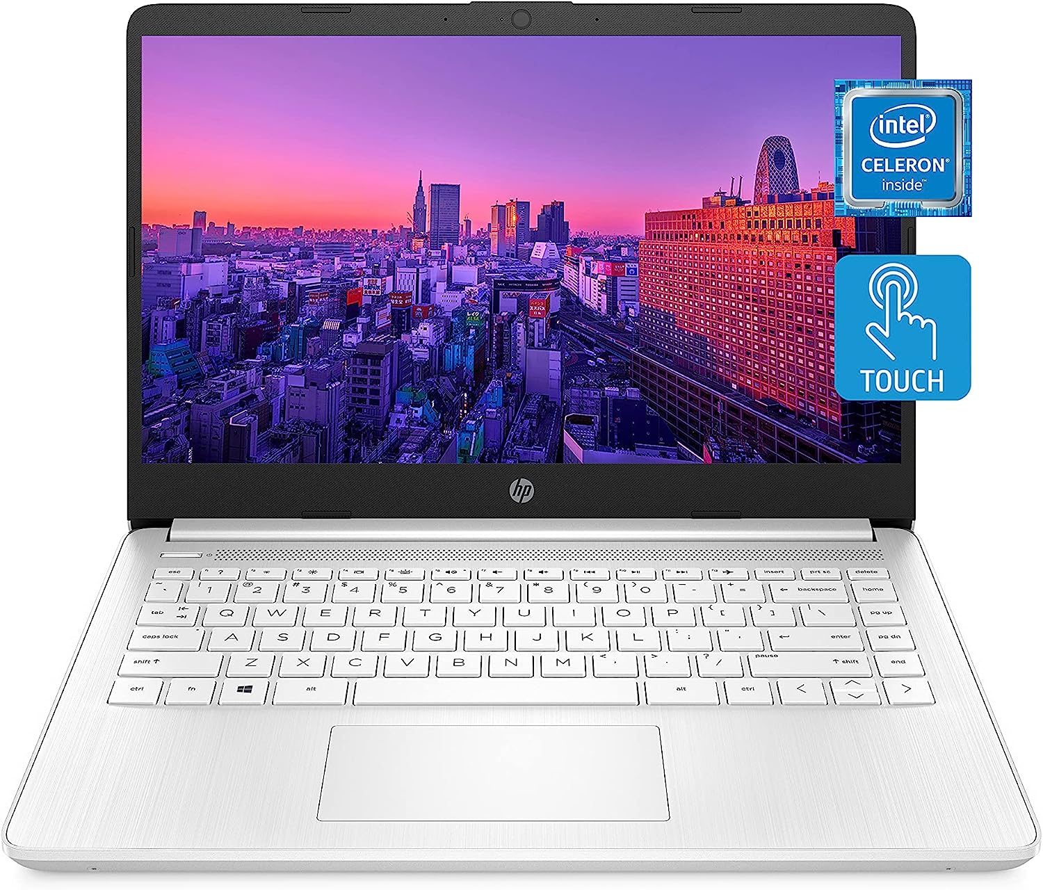 HP Essential 14-dq0080nr Laptop, 14" HD 1366 * 768 Touchscreen 60Hz, Intel Celeron N4120, Intel UHD Graphics, 4GB DDR4 SODIMM RAM, 64GB eMMC, Wi-Fi 5, Windows 11 Home, White