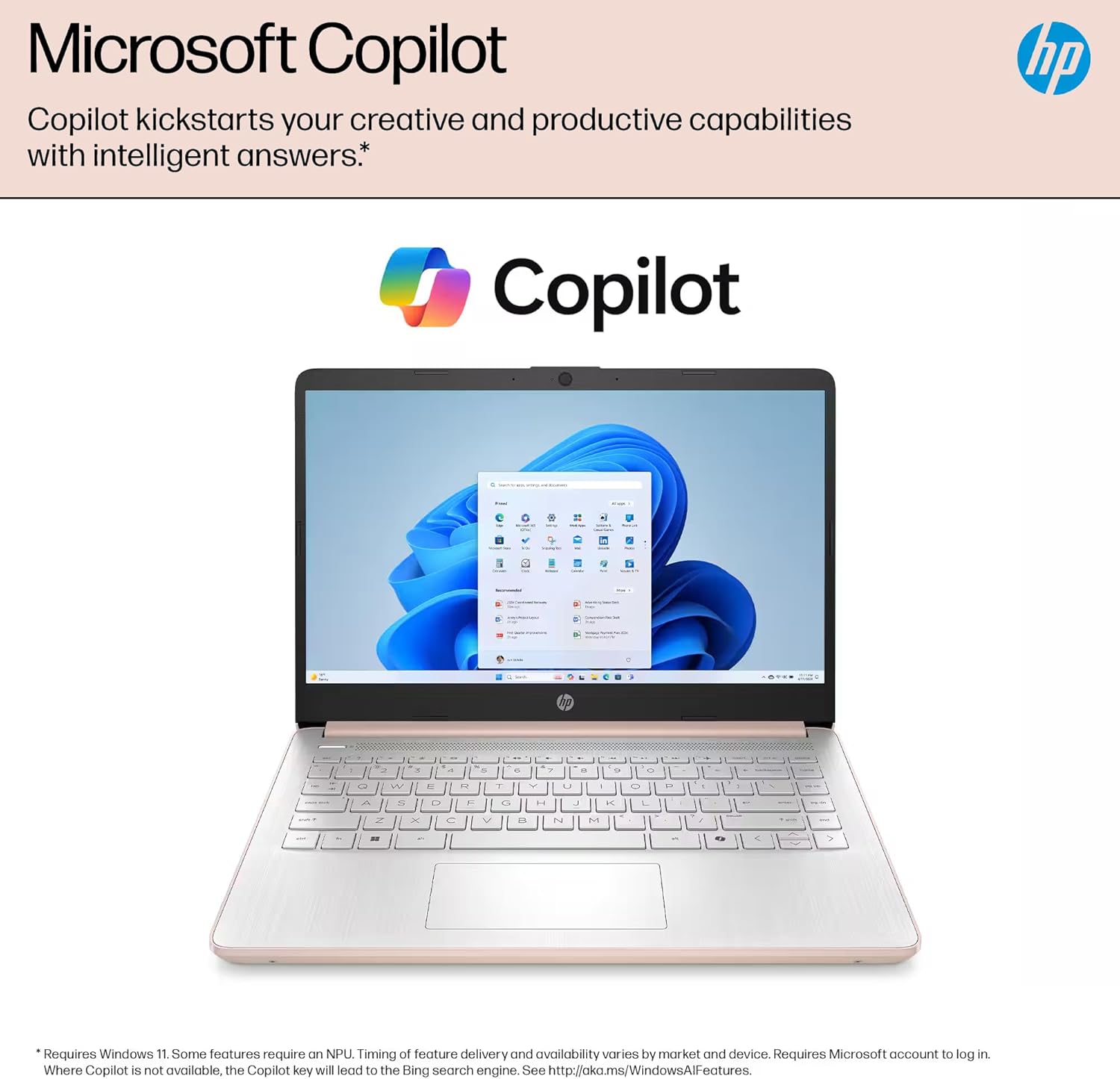 HP Essential 14" Traditional Laptop Intel N-Series 4GB RAM Intel Graphics 128GB eMMC Storage Windows 11 Home 60Hz - Rose