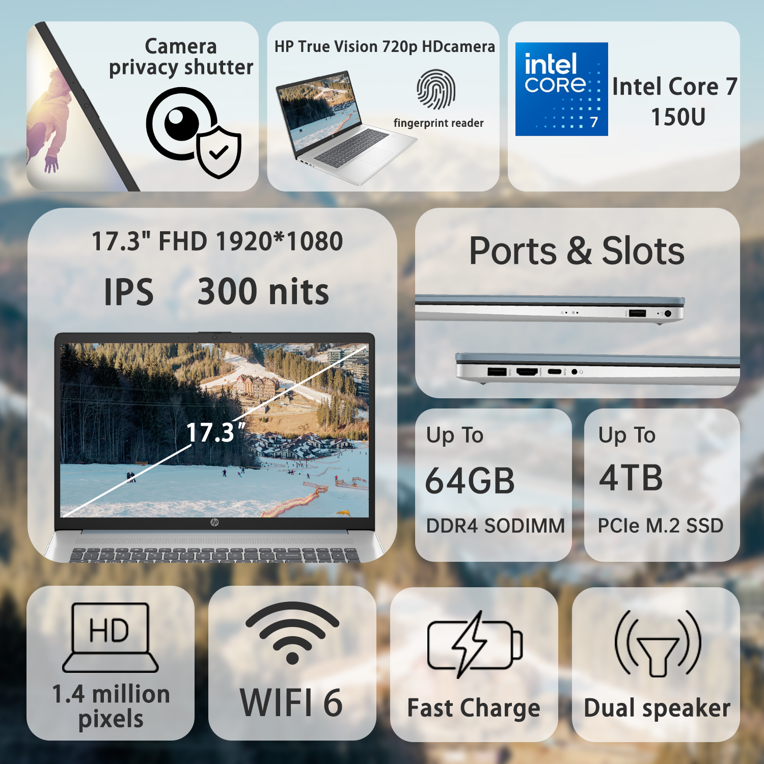 HP Essential 17.3" Traditional Laptop Intel Core 7 8GB RAM Intel Integrated Graphics 512GB SSD Storage Windows 11 Home 60Hz - Blue