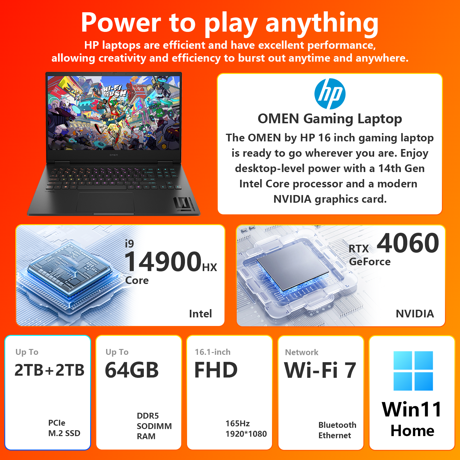 HP Omen 16.1" Traditional Laptop Intel Core i9 16GB RAM NVIDIA GeForce RTX 4060 512GB SSD Storage Windows 11 Home 165Hz - Black