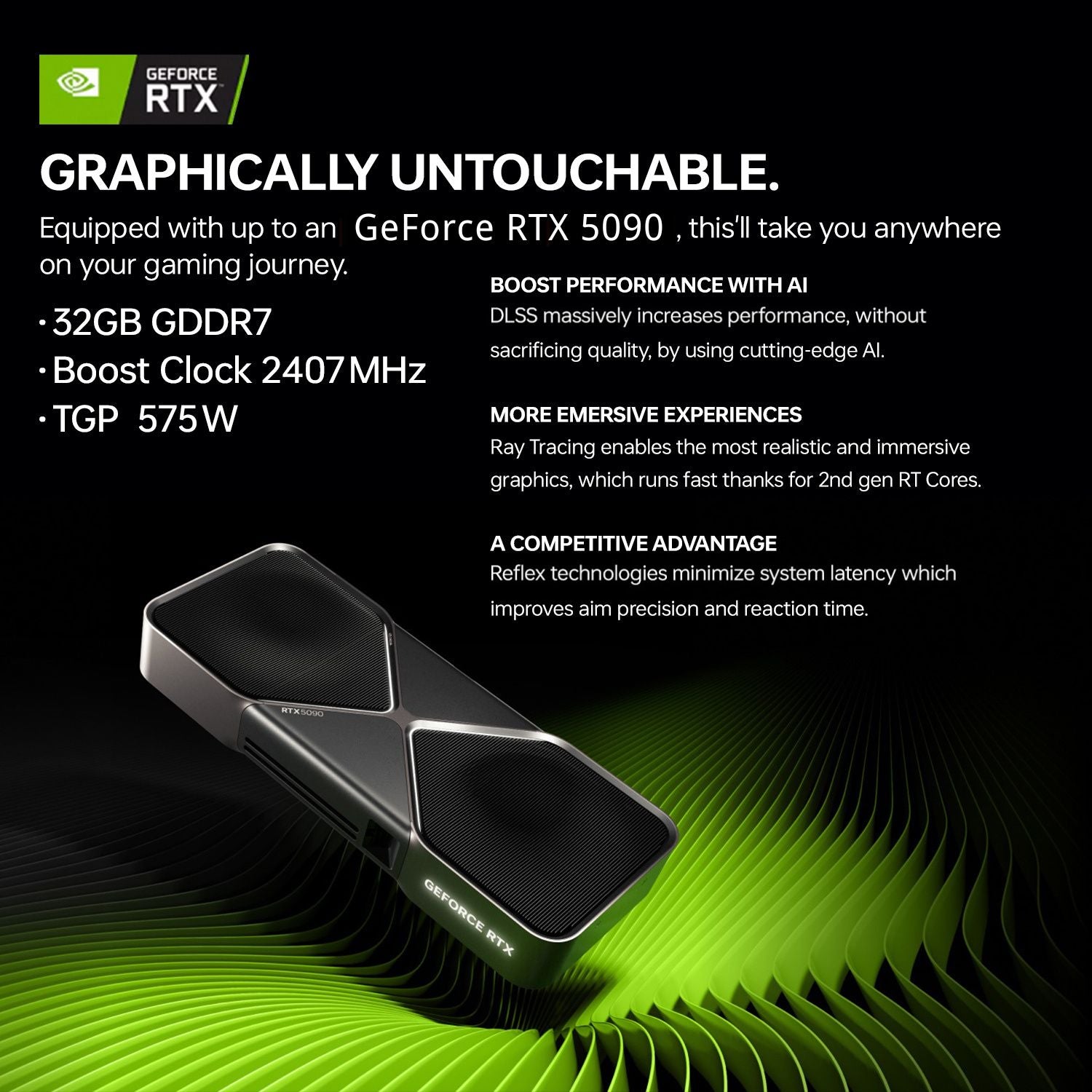 HP Omen MAX GT23-0990m Gaming Tower Desktop FEATURES: AMD Ryzen 9 9900X3D, NVIDIA GeForce RTX 5090, 128GB DDR5 UDIMM, 4TB PCIe M.2 SSD, Wi-Fi 7, Windows 11 Pro, Black