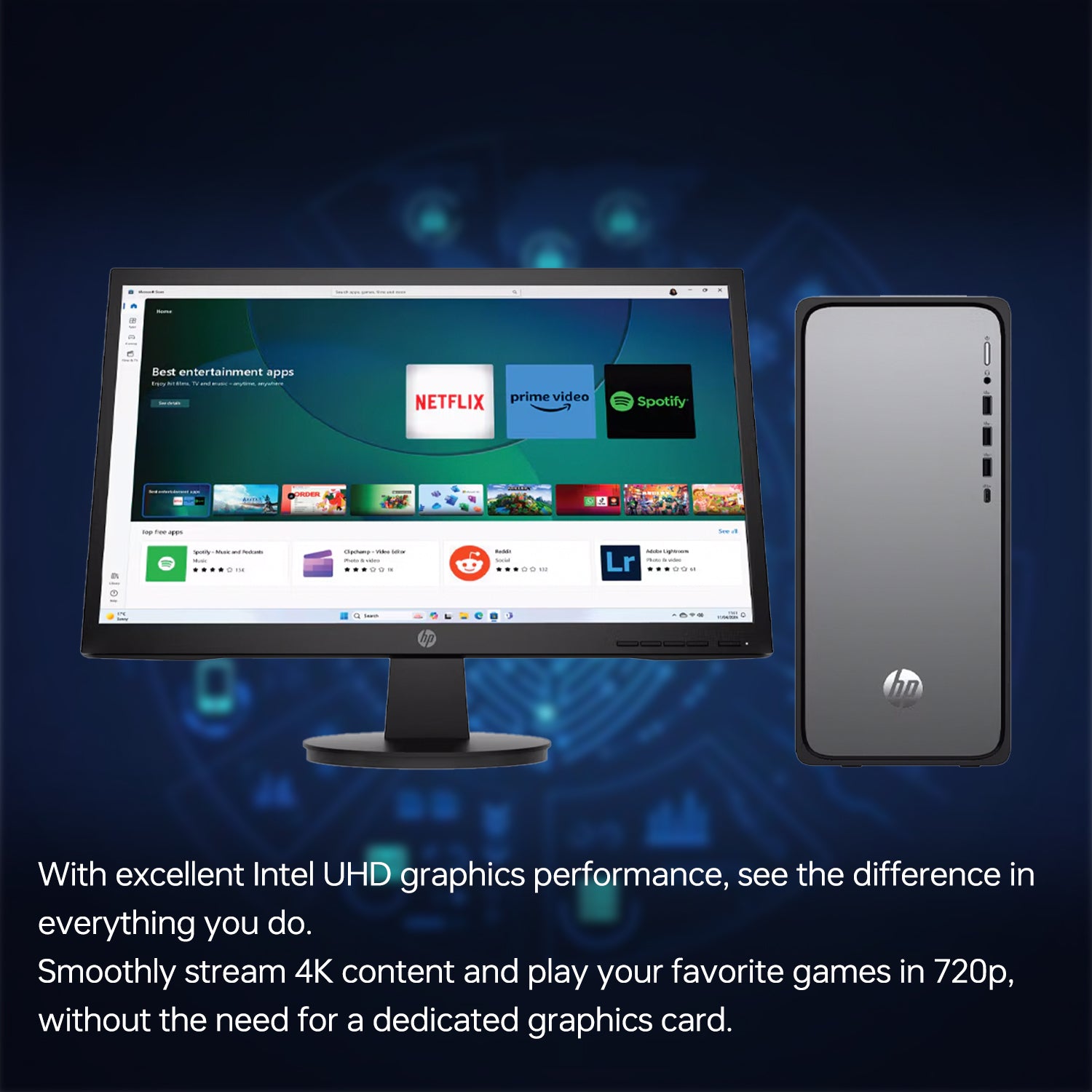 HP OmniDesk Tower Desktop Intel Core i5 8GB RAM Intel UHD Graphics 512GB SSD Storage Windows 11 Home - Silver