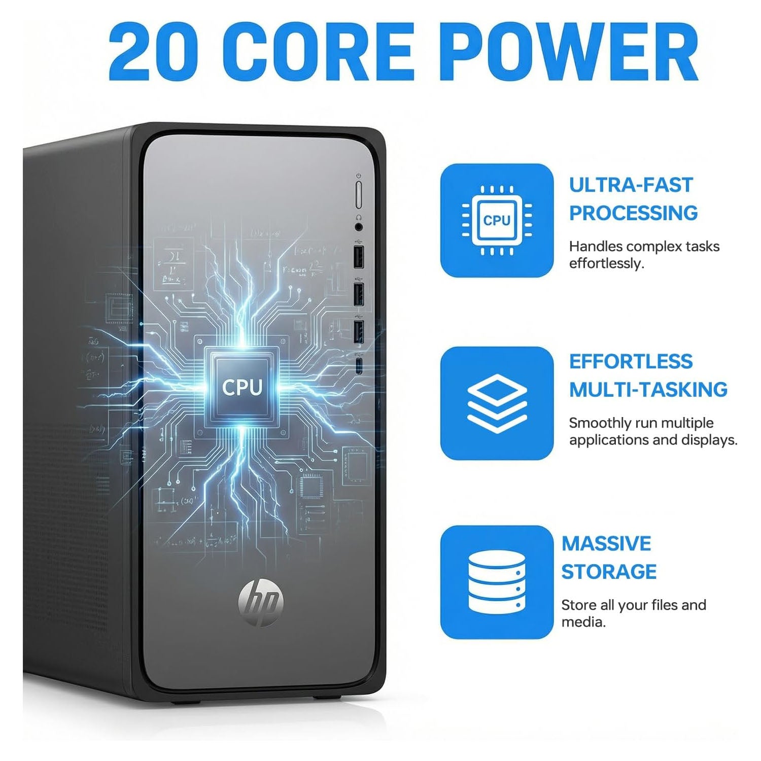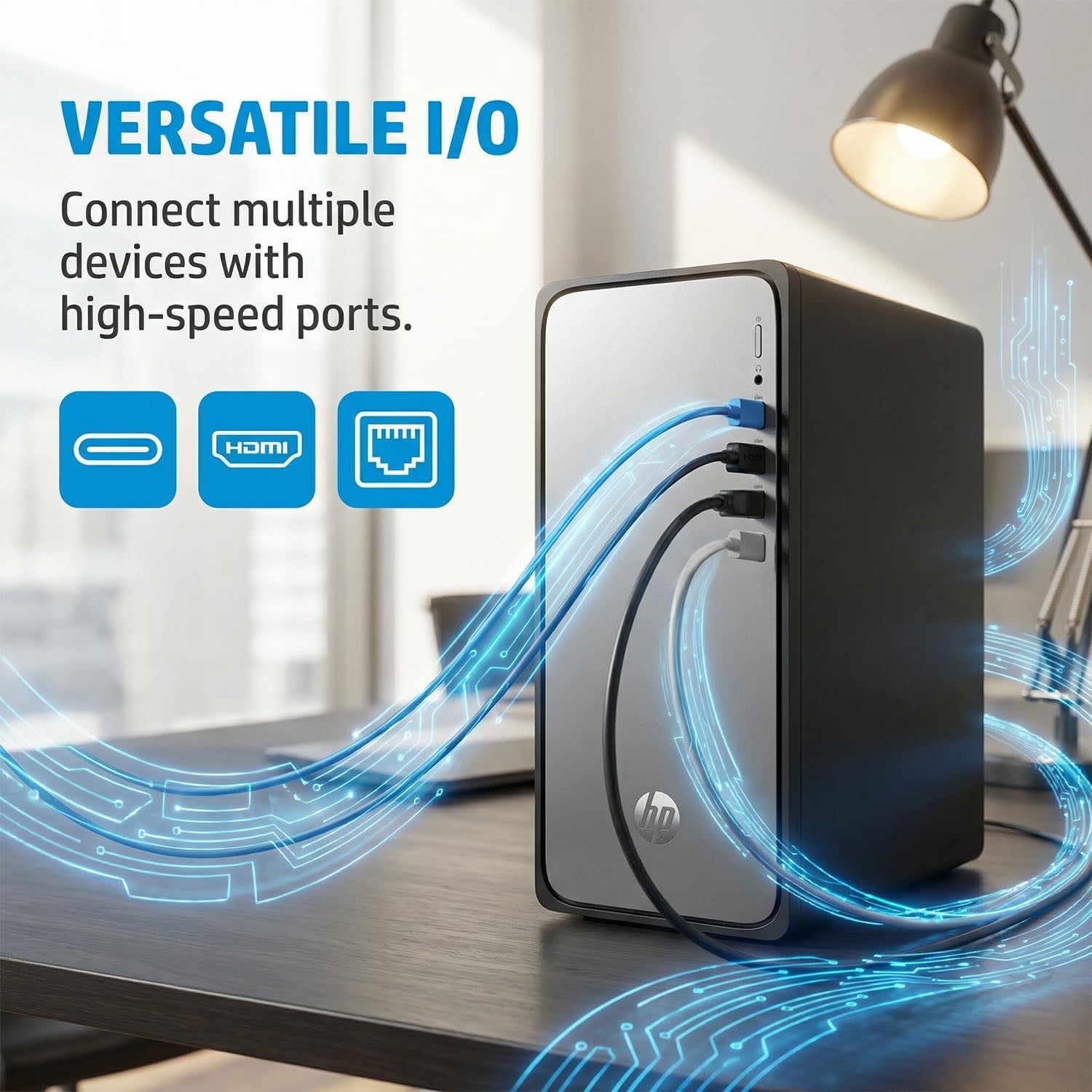 HP OmniDesk Tower Desktop Intel Core i7 16GB RAM Intel UHD Graphics 512GB SSD Storage Windows 11 Pro - Black