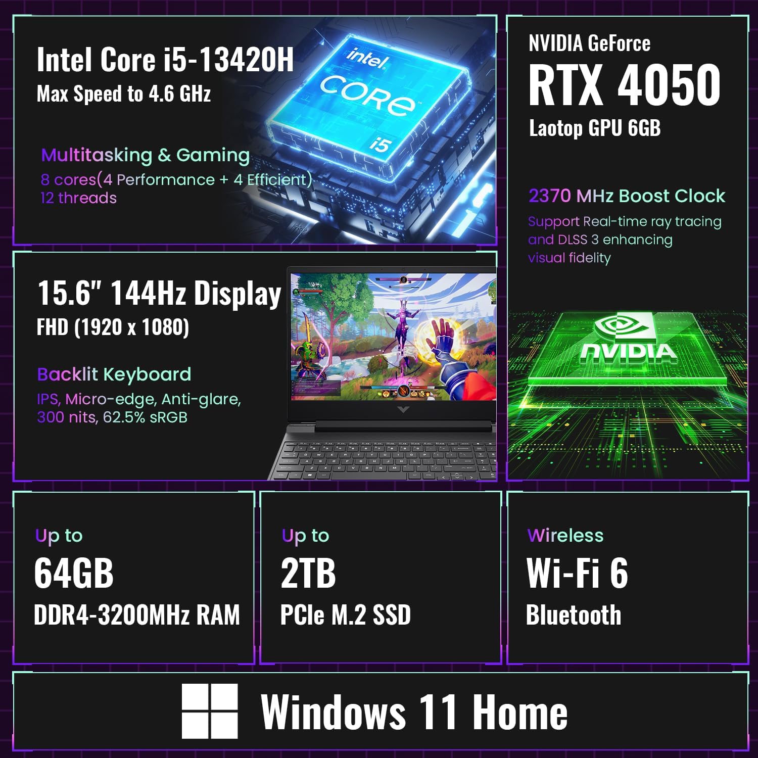 HP Victus 15.6" Traditional Laptop Intel Core i5 16GB RAM NVIDIA GeForce RTX 4050 512GB SSD Storage Windows 11 Home 144Hz - Black