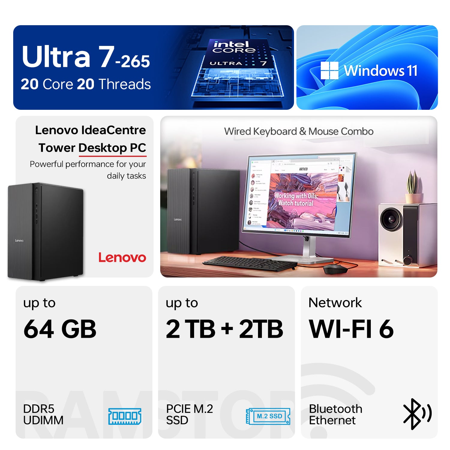 LENOVO IdeaCentre Tower Desktop Intel Core Ultra 7 16GB RAM Intel Graphics 1TB SSD Storage Windows 11 Home - Grey