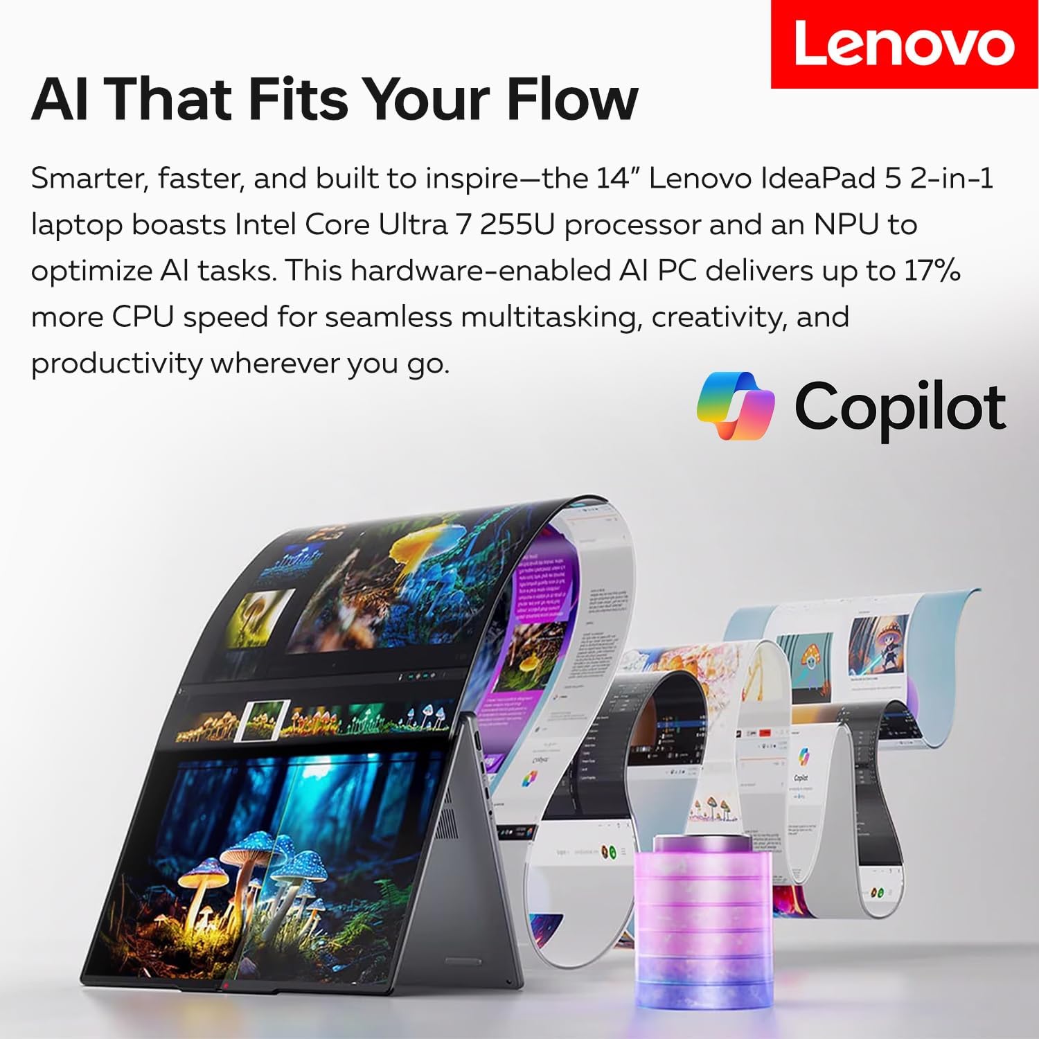 LENOVO IdeaPad 5 14" 2-in-1 Laptop Intel Core Ultra 7 16GB RAM Intel Graphics 512GB SSD Storage Windows 11 Home 60Hz - Grey