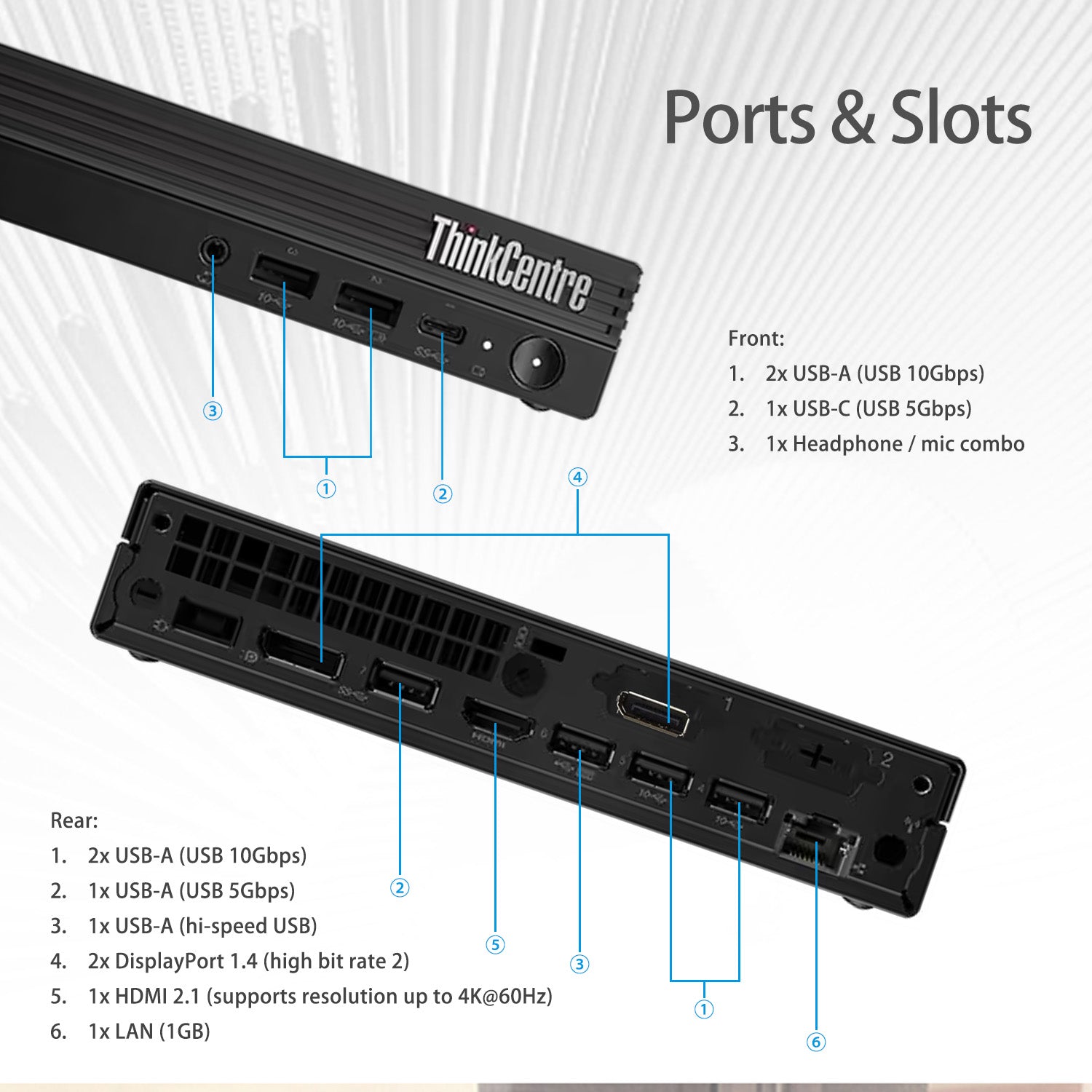 LENOVO ThinkCentre M70q MFF Desktop Intel Core i5 16GB RAM Intel UHD Graphics 256GB SSD Storage Windows 11 Pro - Black