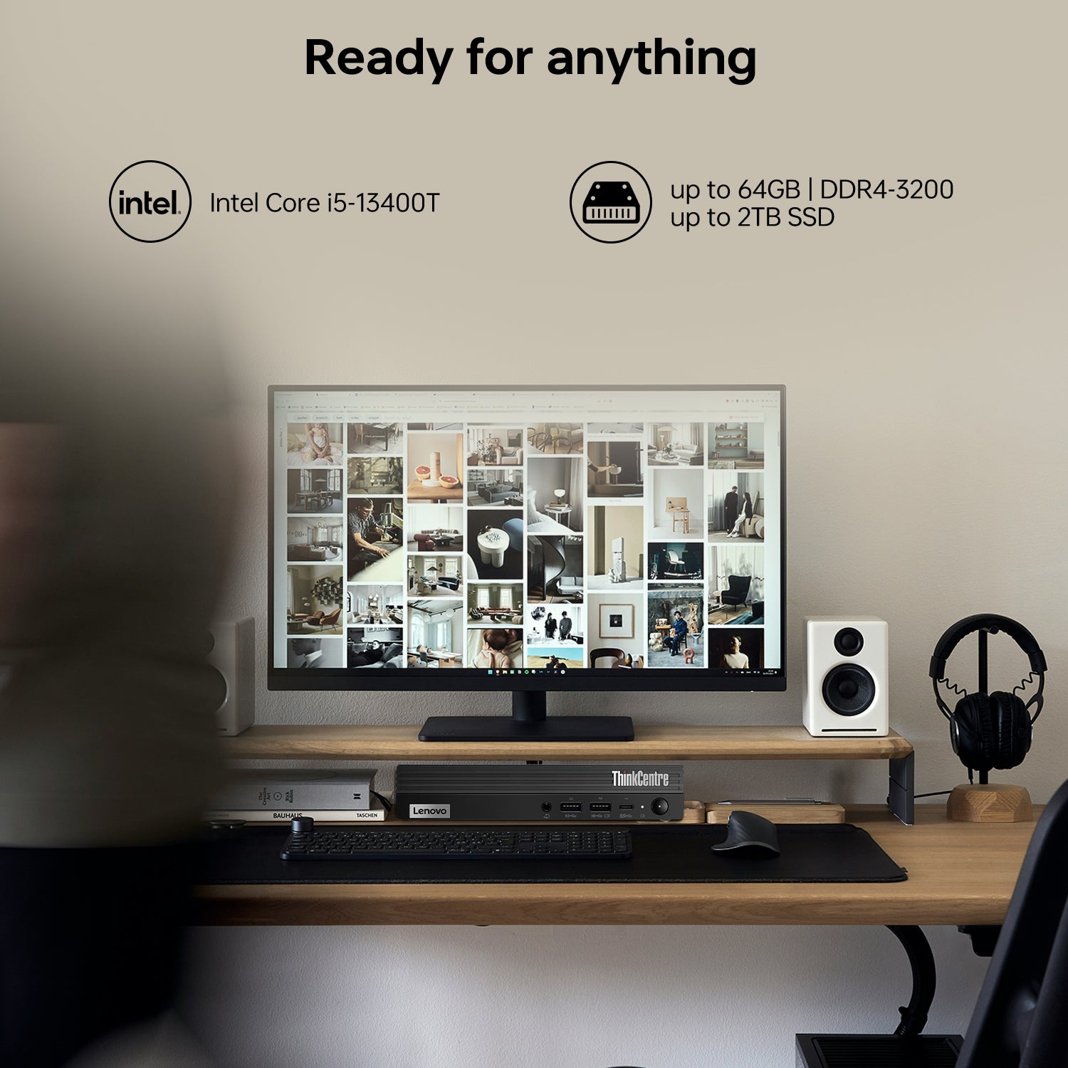 LENOVO ThinkCentre M70q MFF Desktop Intel Core i5 8GB RAM Intel UHD Graphics 256GB SSD Storage Windows 11 Pro - Black