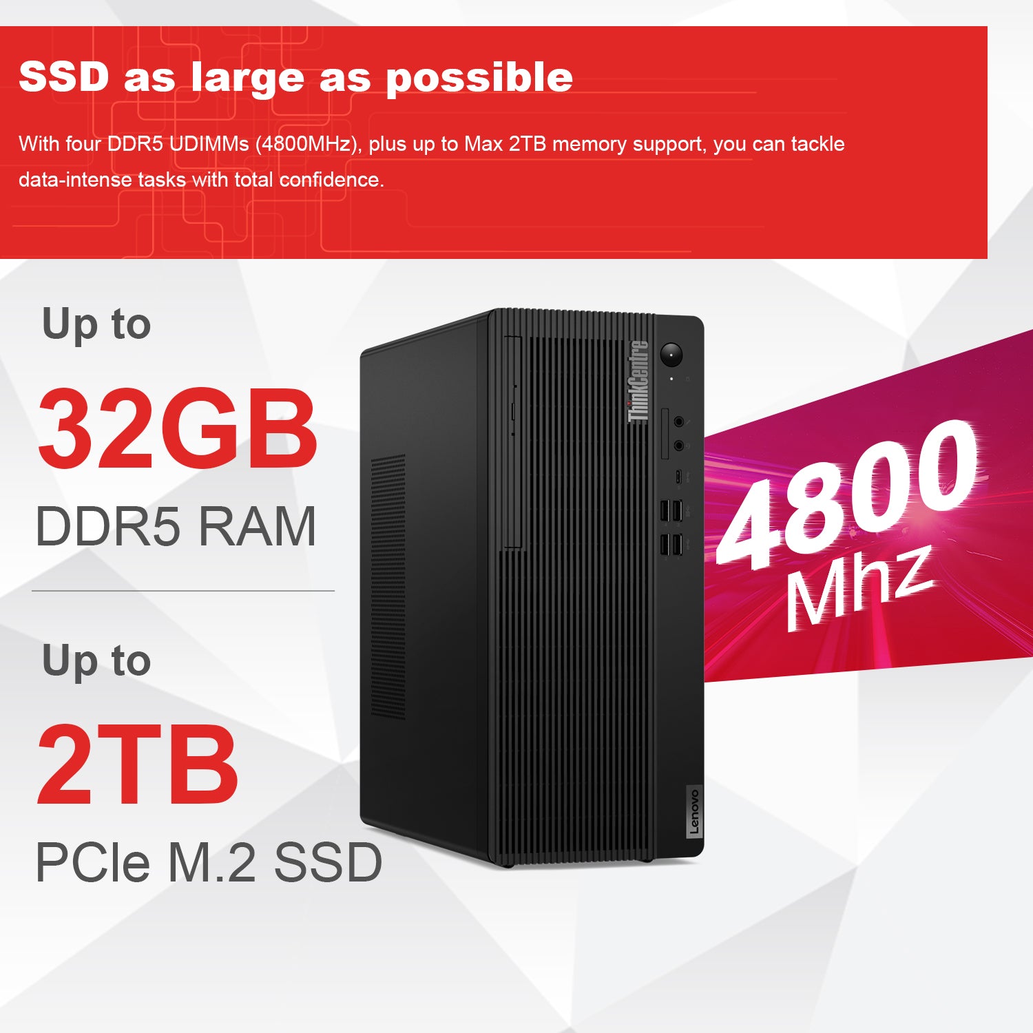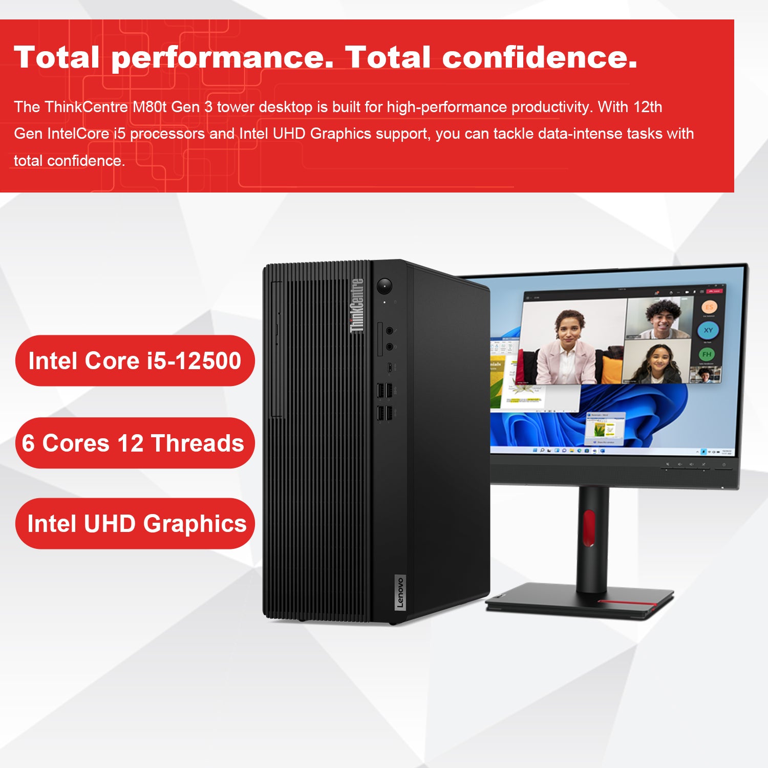 LENOVO ThinkCentre M80t Tower Desktop Intel Core i5 8GB RAM Intel UHD Graphics 256GB SSD Storage Windows 11 Pro - Black