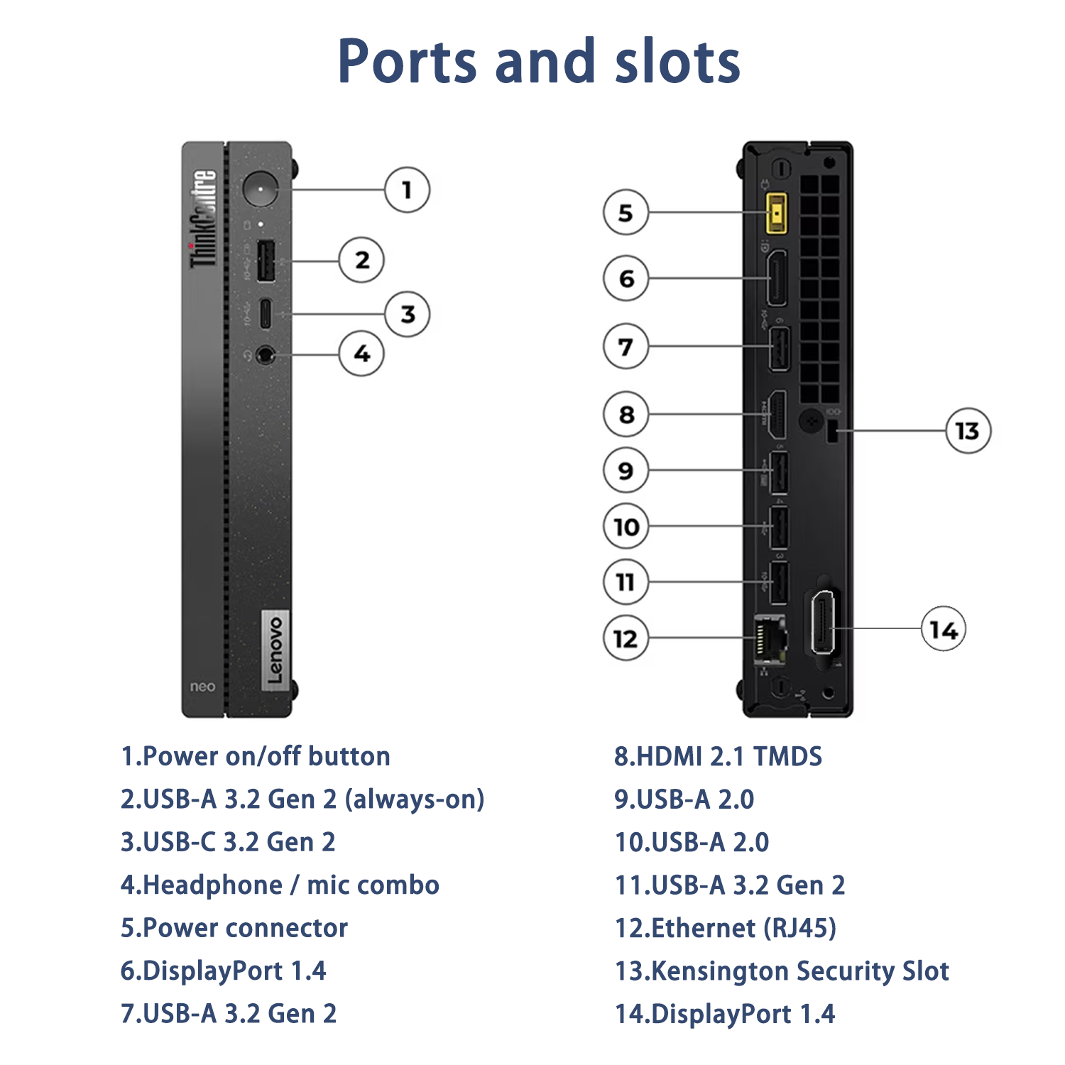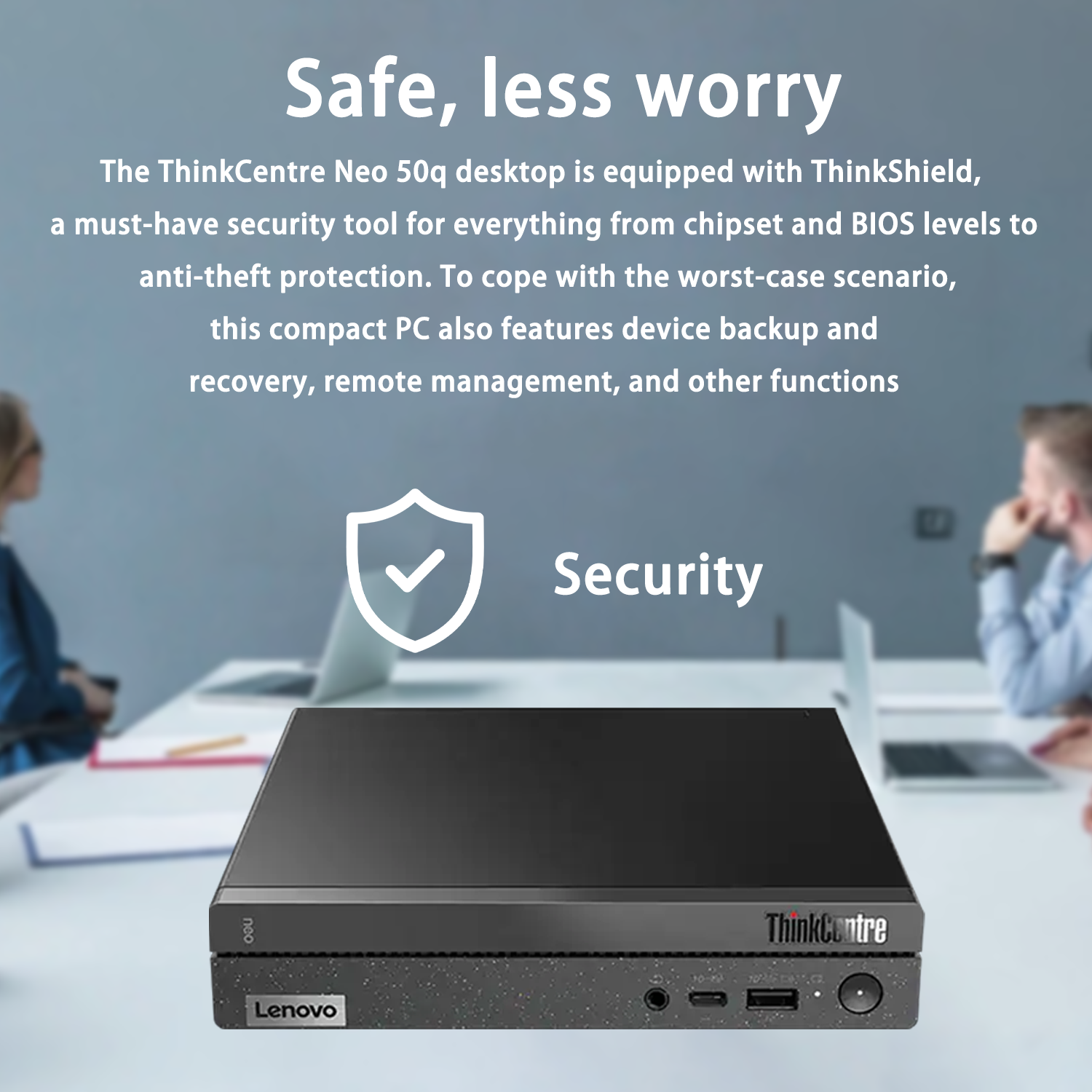 LENOVO ThinkCentre neo 50q MFF Desktop Intel Core i3 8GB RAM Intel UHD Graphics 256GB SSD Storage Windows 11 Pro - Black