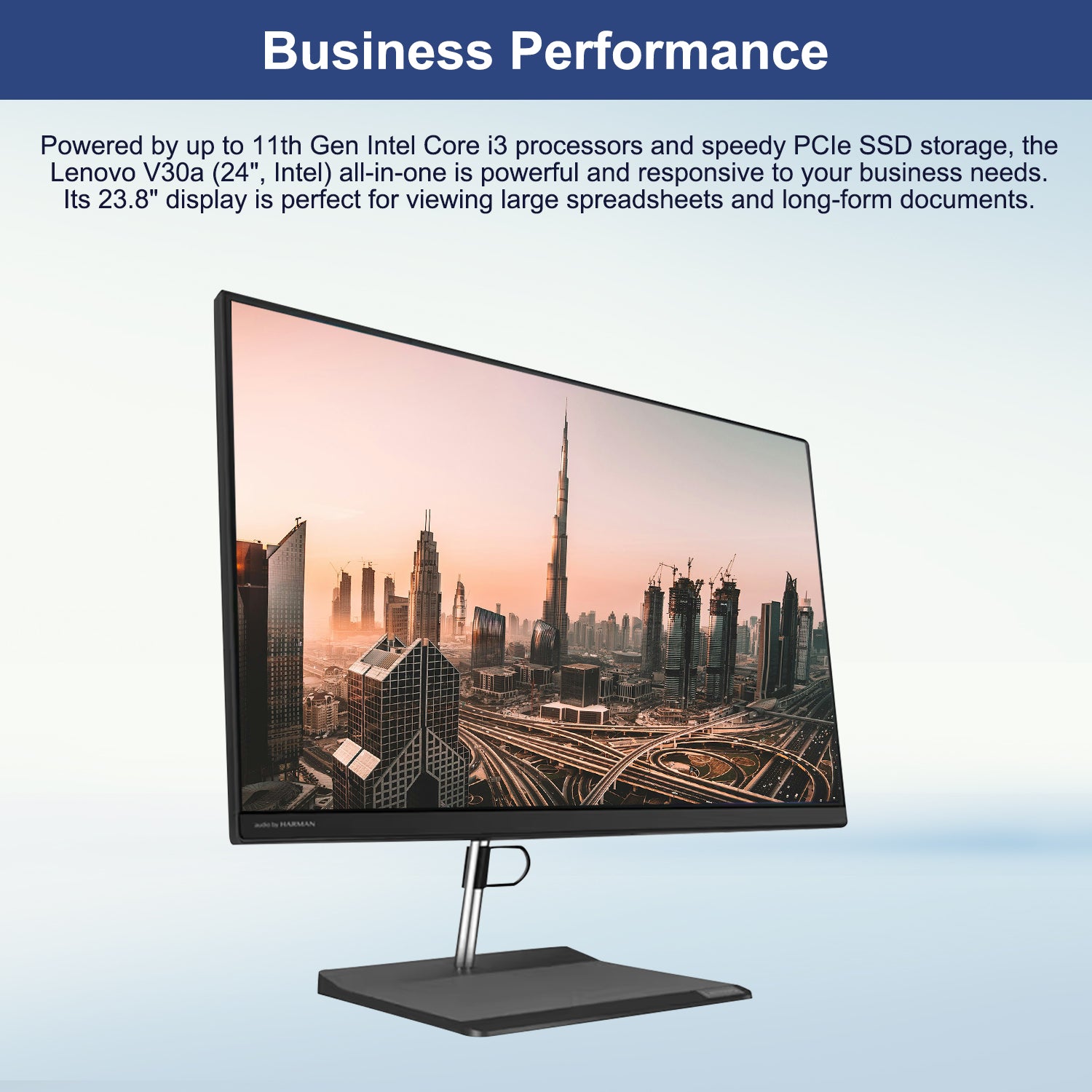 Lenovo V-Series V30a Business All-in-One, 23.8" FHD 1920*1080 Non-touch 60Hz, Intel Core i3-1115G4, Intel UHD Graphics, 4GB DDR4 SODIMM, 256GB PCIe M.2 SSD, Wi-Fi 5, No OS, Black