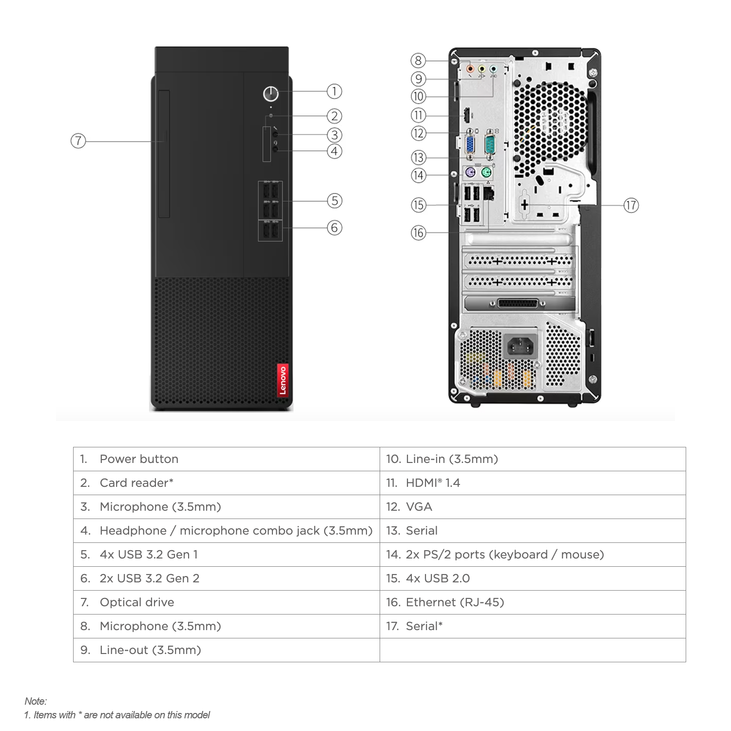 Lenovo V-Series V50t Gen 1 Business Tower Desktop, Intel Core i5-10400, Intel UHD Graphics, 4GB DDR4 RAM, 1TB 3.5" HDD, Wi-Fi 5, No OS, Black