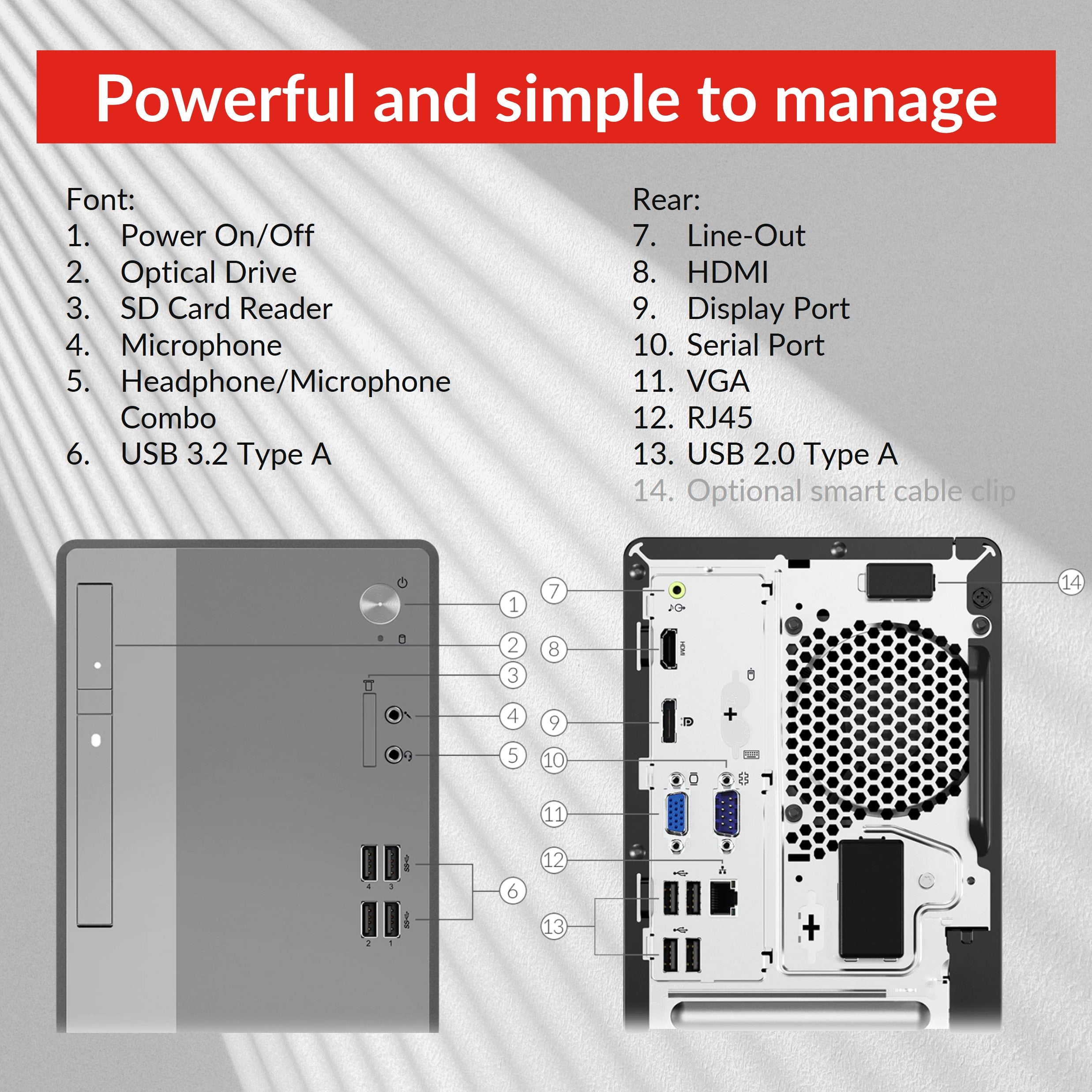 Lenovo V50t Gen 2 Business Tower Desktop, Intel Core i7-10700, Intel UHD Graphics 630, 4GB DDR4 RAM, 1TB 3.5" HDD, No Wi-Fi, No OS, Black