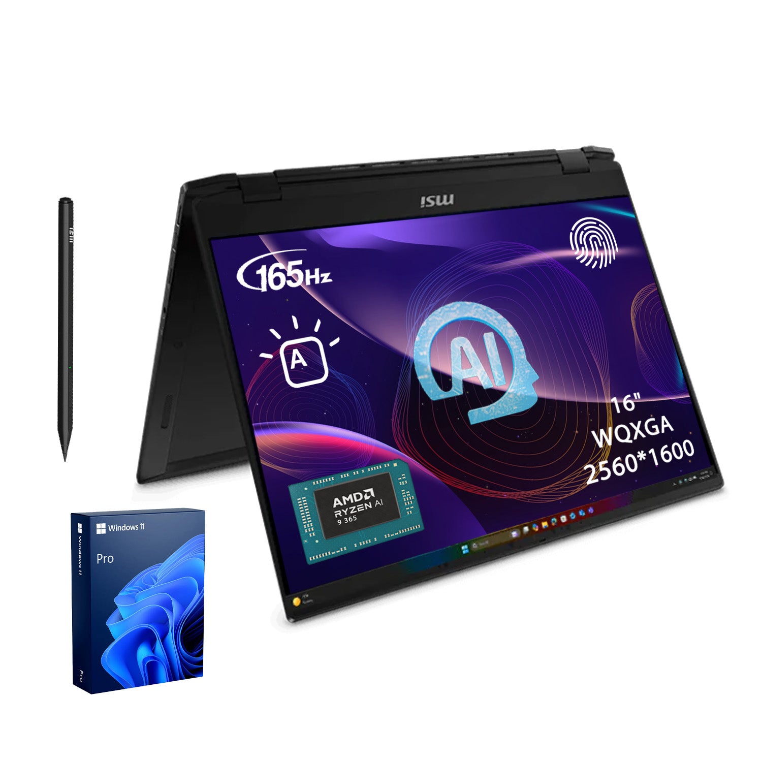 MSI Summit A16 16" 2-in-1 Laptop AMD Ryzen AI 9 32GB RAM AMD Radeon Graphics 1TB SSD Storage Windows 11 Pro 165Hz - Black