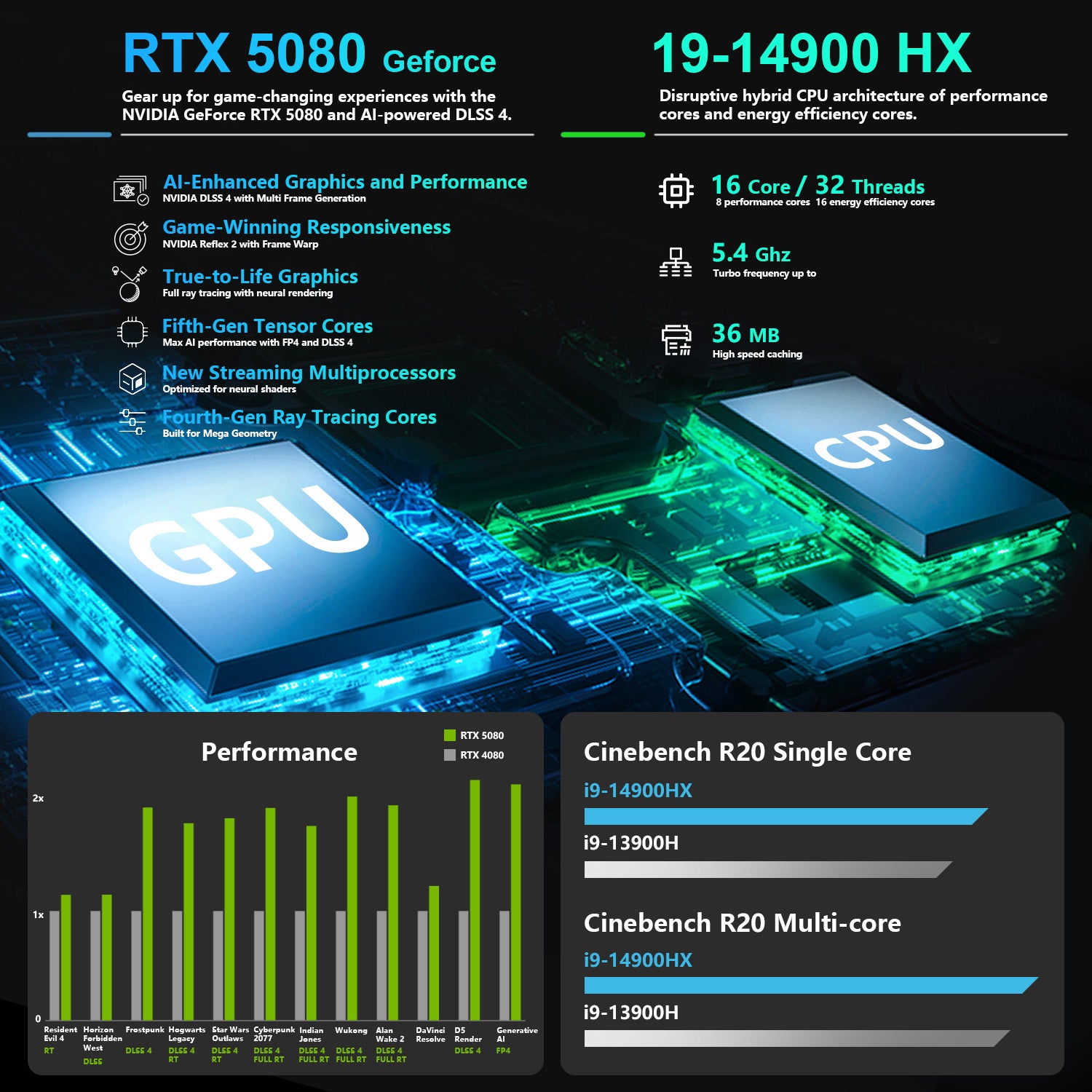 THUNDEROBOT Radiant R16 Gaming Traditional Laptop FEATURES: 16 inches WQXGA 2560*1600 Non-touch 300Hz, Intel Core i9-14900HX, NVIDIA GeForce RTX 5080, 16GB DDR5 SODIMM, 1TB PCIe M.2 SSD, Wi-Fi 6, Windows 11 Home, Black